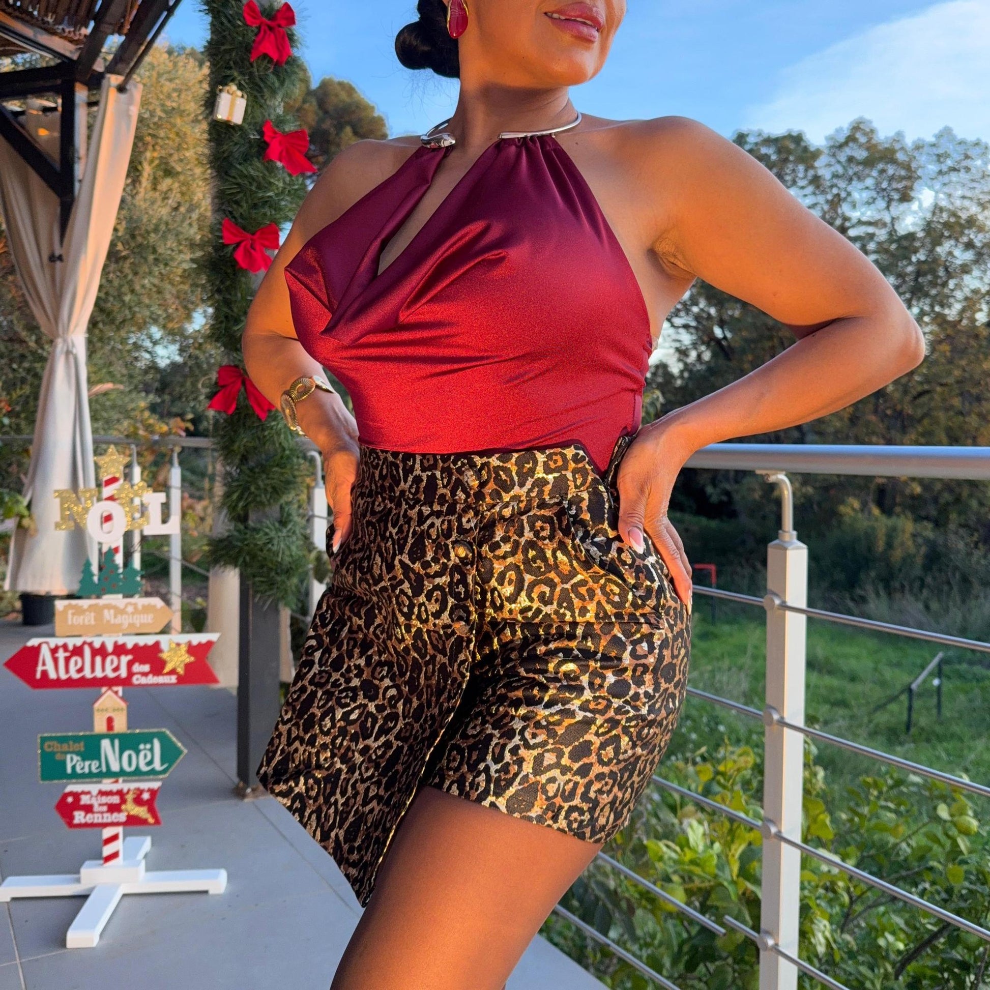 Body chic avec un joli drapé au niveau du décolleté, maintenu par un anneau métallisé qui apporte une touche élégante et moderne. Sa coupe dos-nu met en valeur la silhouette tout en restant confortable. Idéal pour une tenue de soirée, un look habillé ou un style plus osé avec une jupe ou un short.