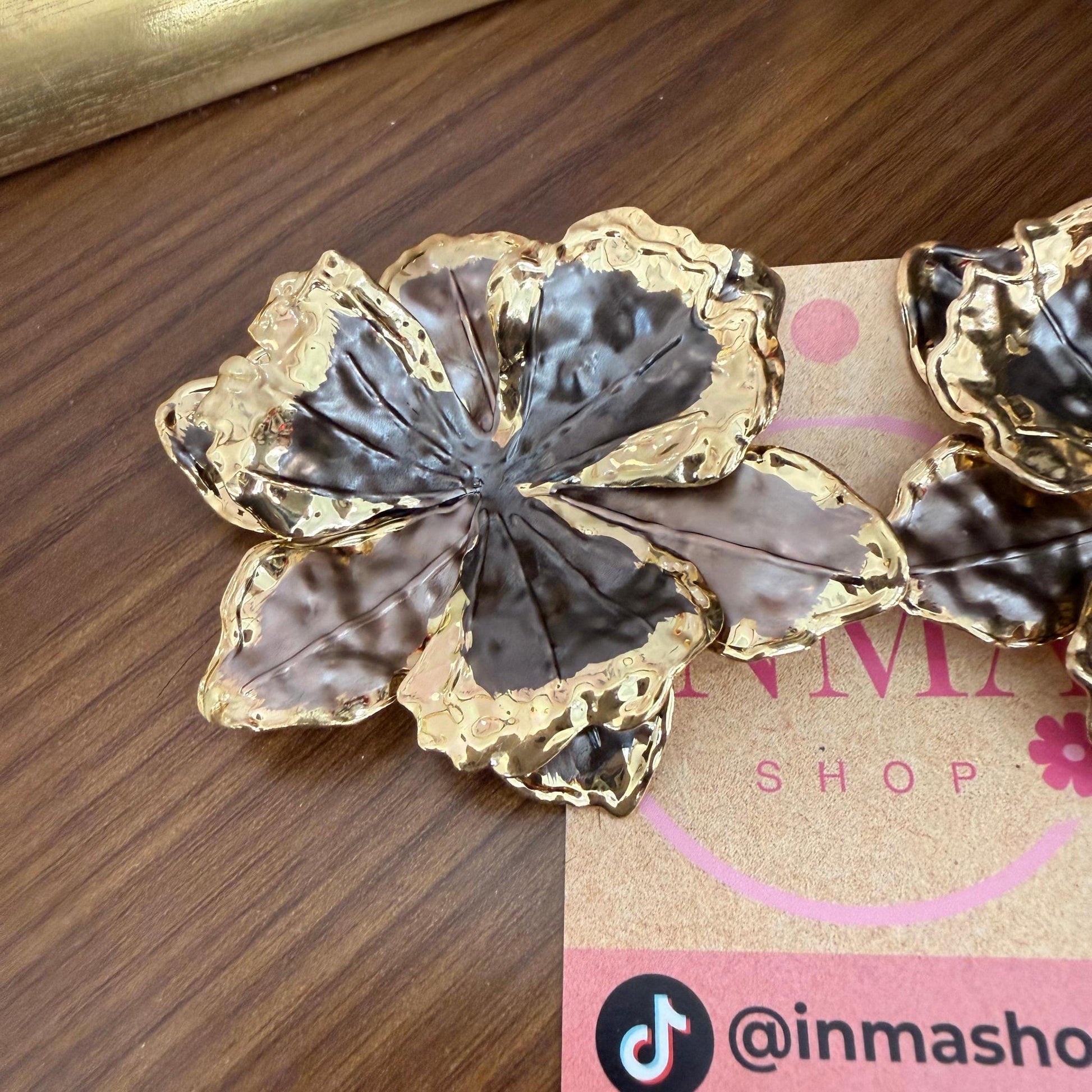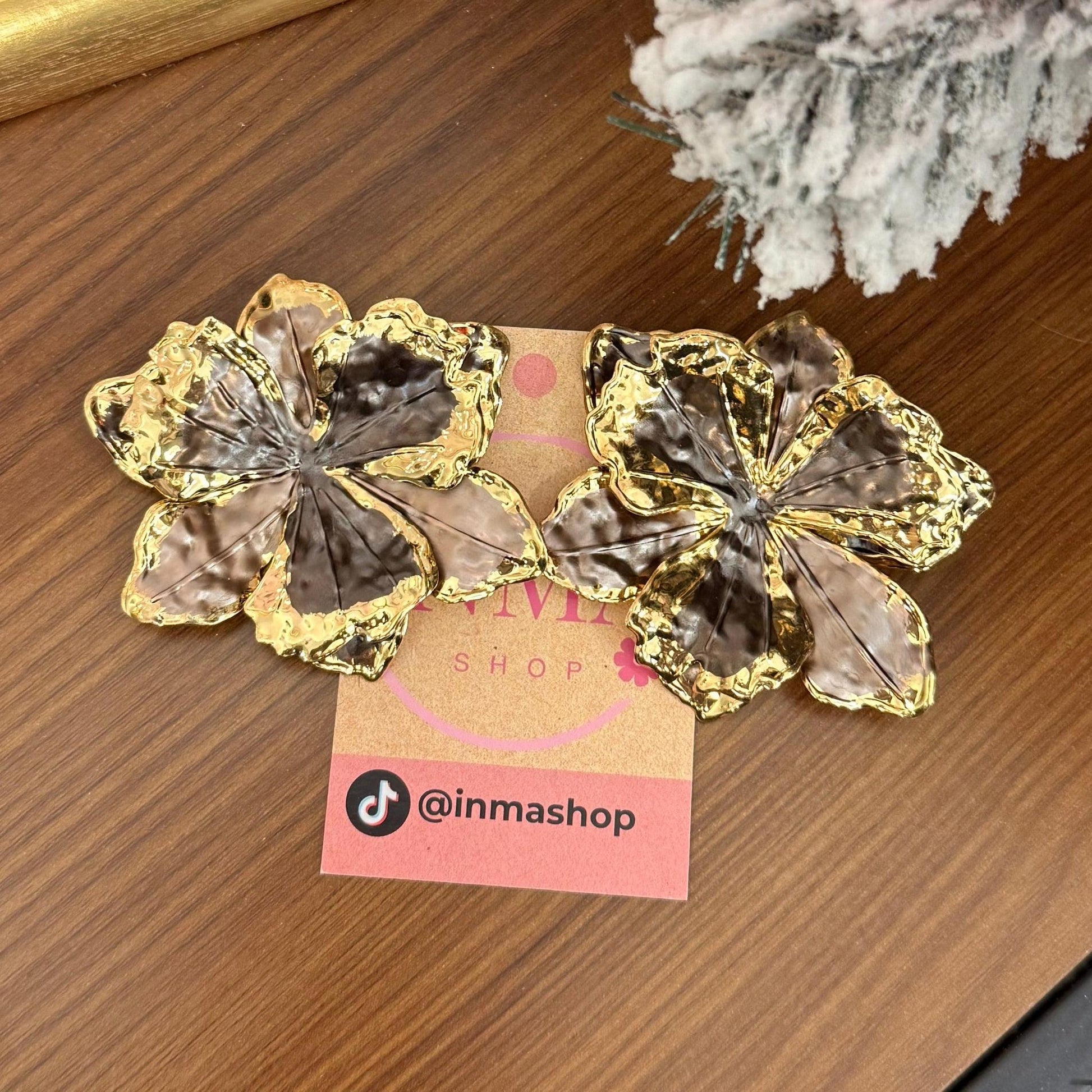 Boucles d’oreilles florales en métal travaillé, avec un contour doré martelé qui apporte du relief et une finition raffinée.