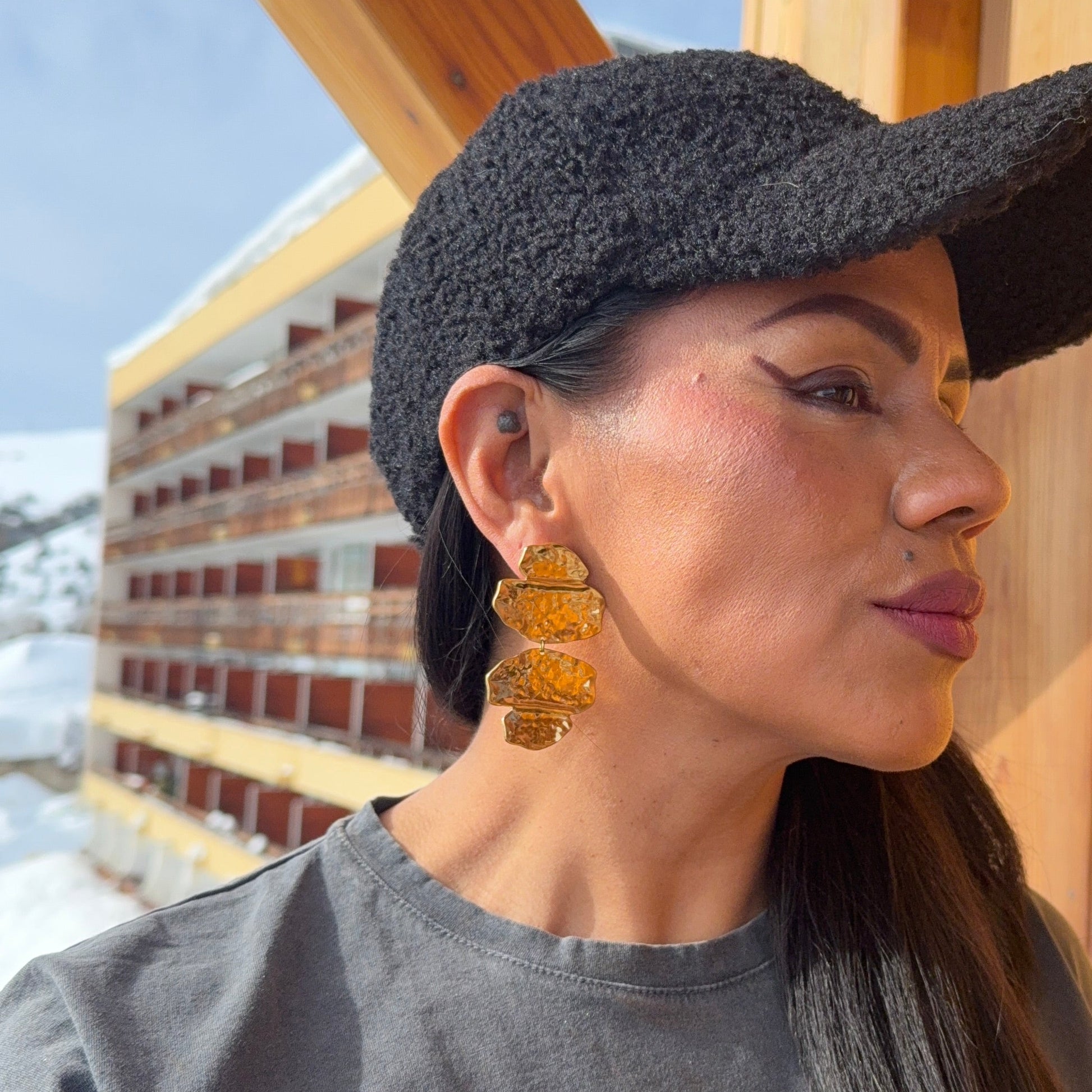 Les boucles d’oreilles Dorada Salvaje sont une véritable déclaration de style. Leur design en superposition de plaques dorées texturées apporte du caractère, de la lumière et une touche audacieuse à chaque tenue.