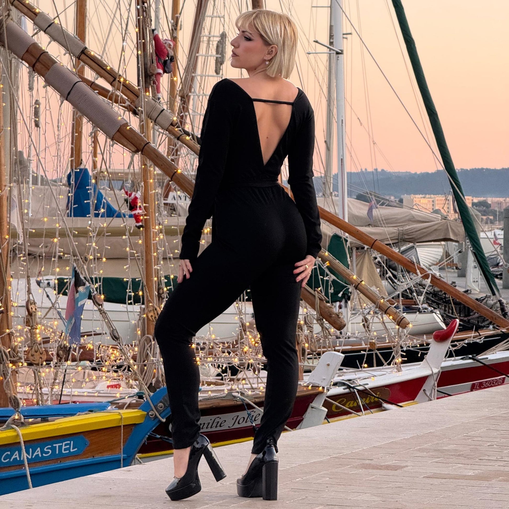 La combinaison Margot met en valeur la silhouette avec son dos ultra plongeant maintenu par une fine bretelle.