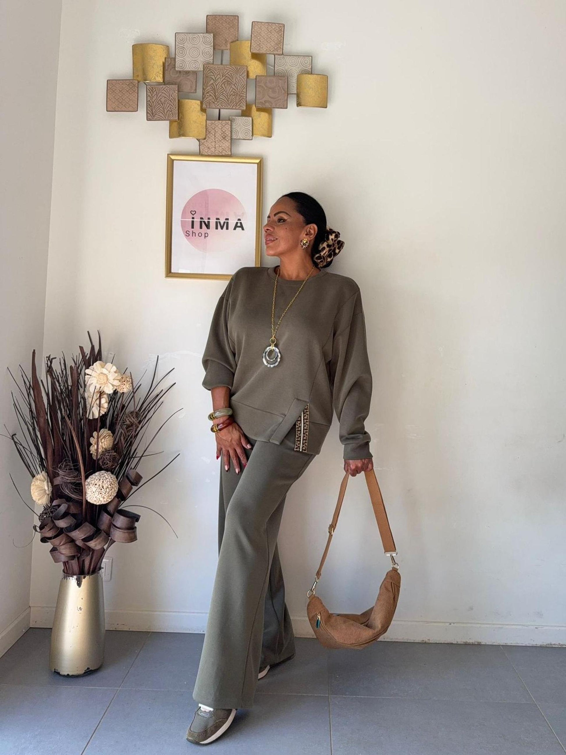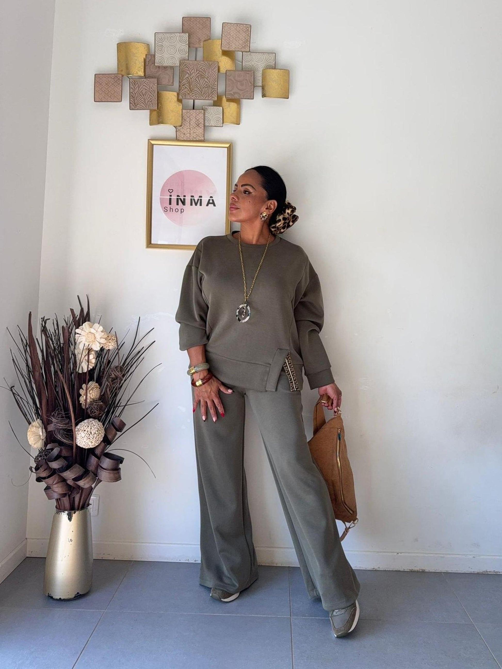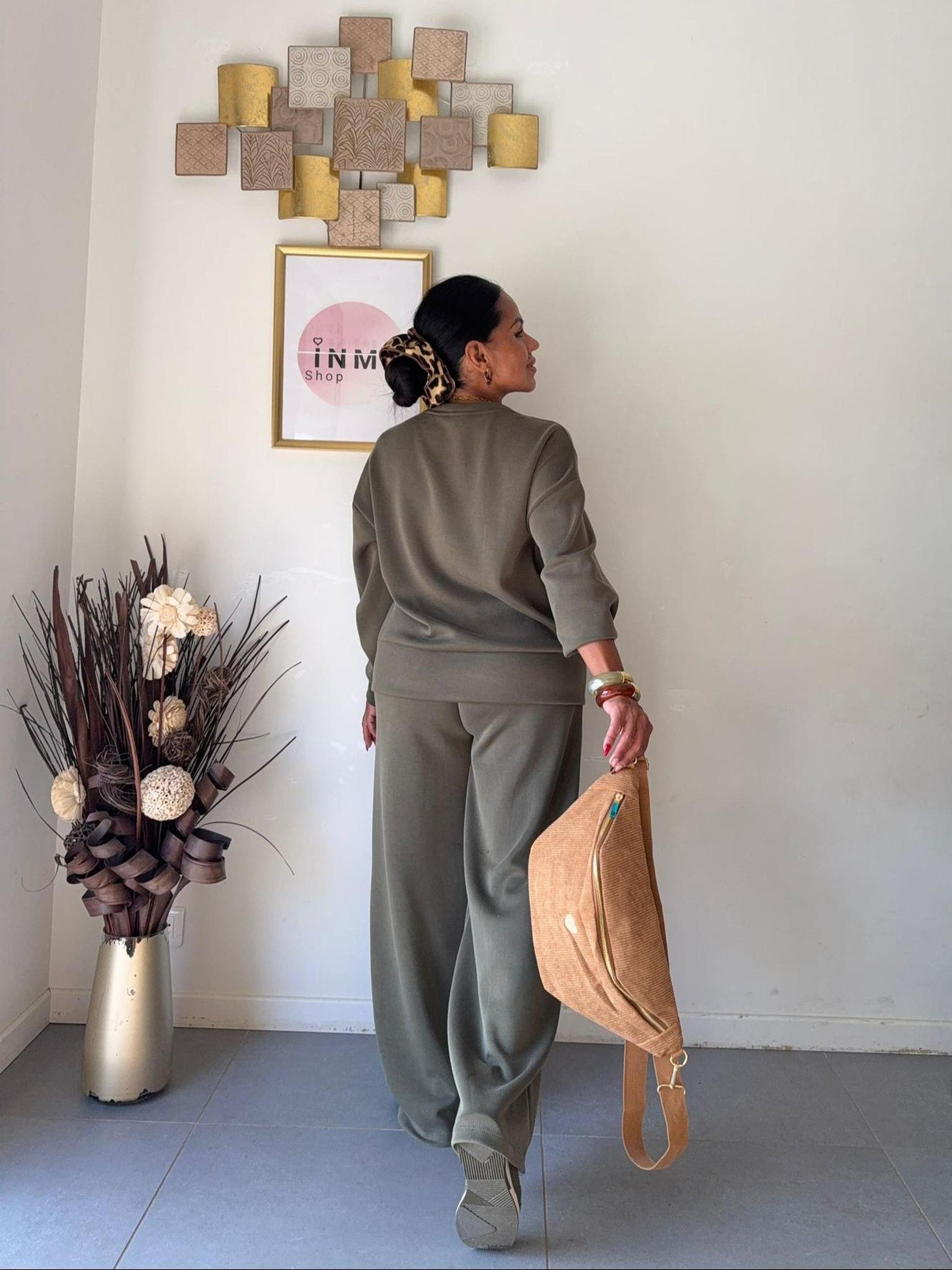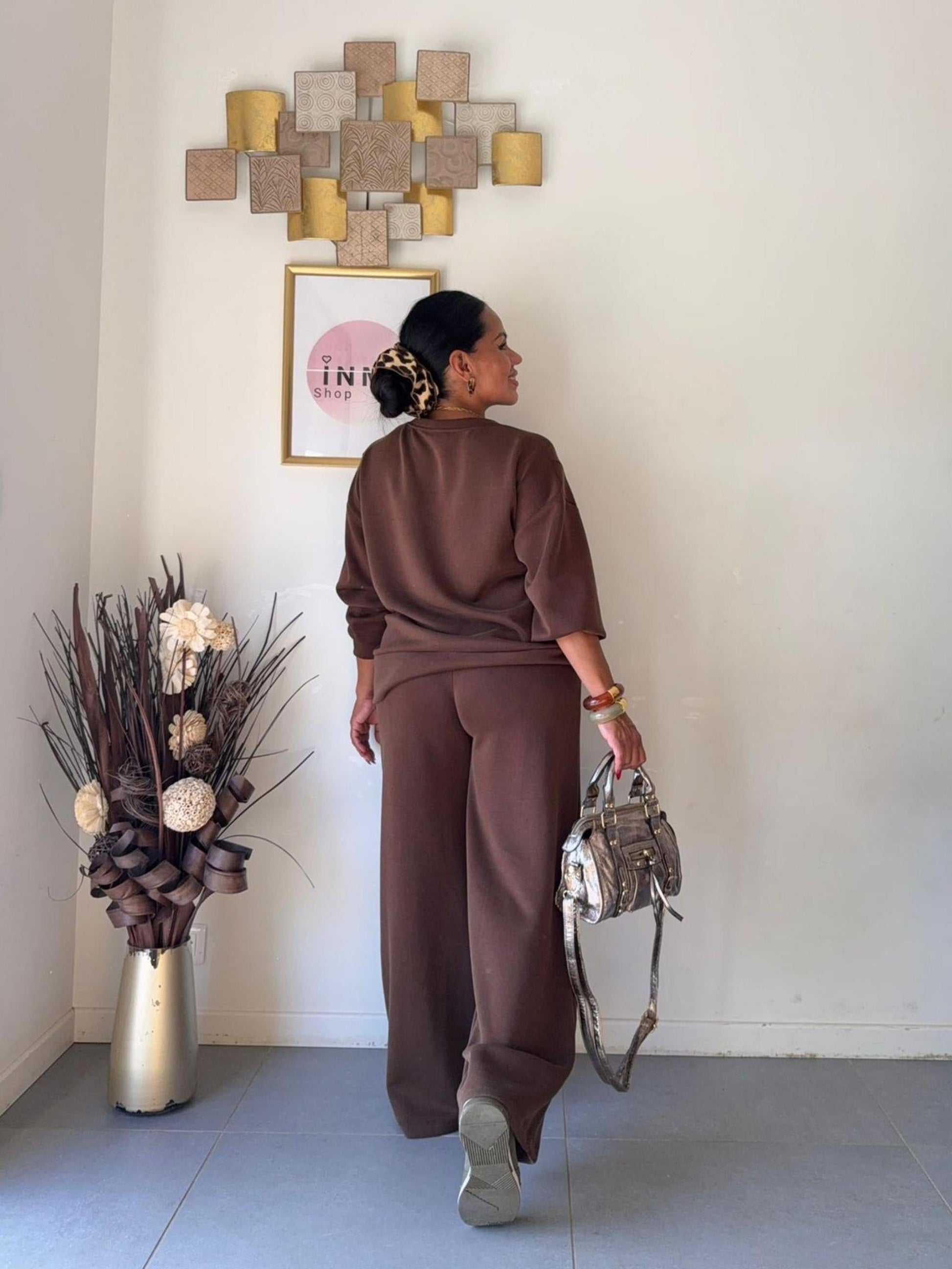 Alliez style et confort avec l’Ensemble Sophie, une tenue parfaite pour vos journées actives comme vos moments détente. Son pantalon fluide et son haut à coupe moderne créent un look chic et décontracté.