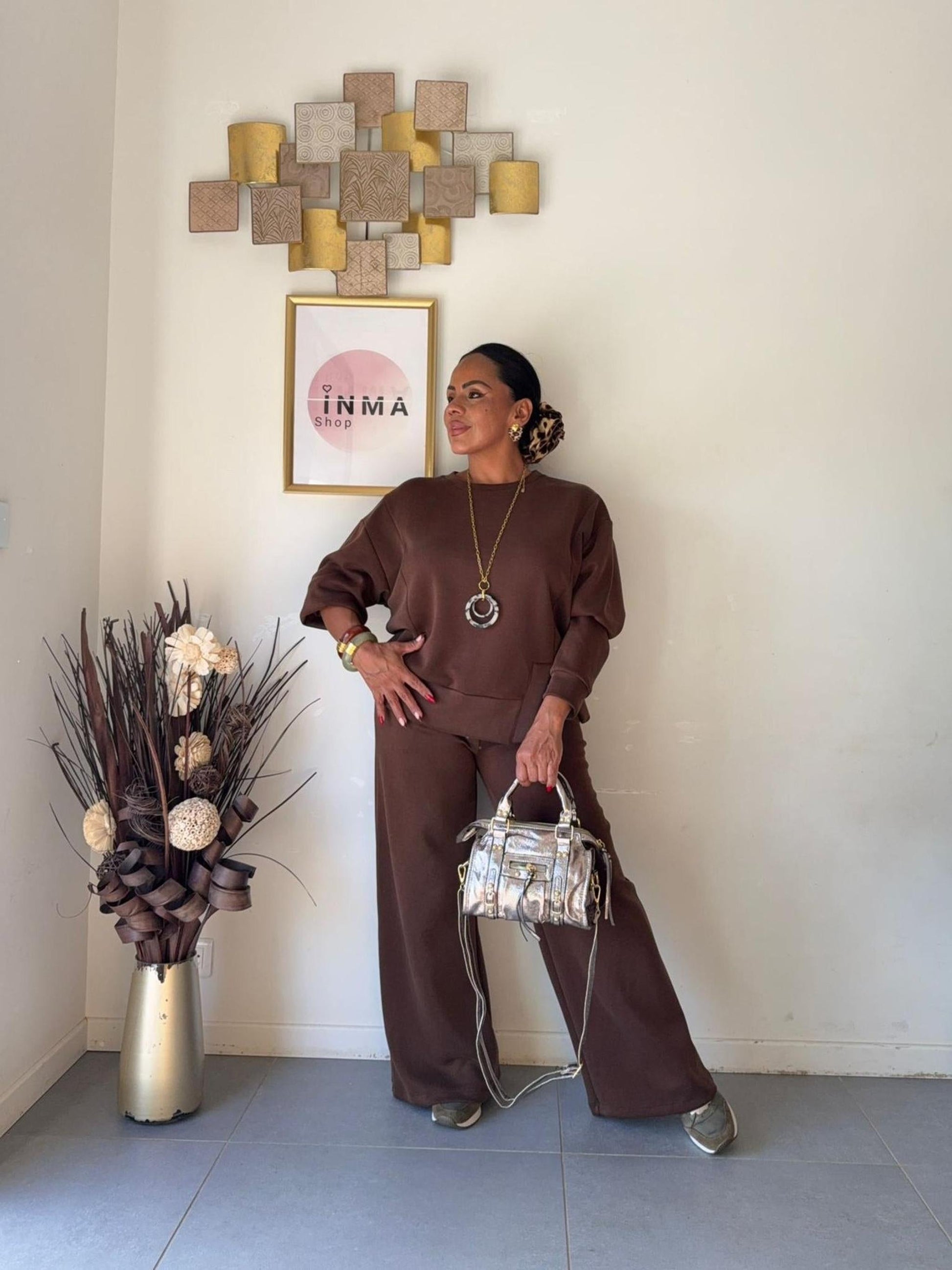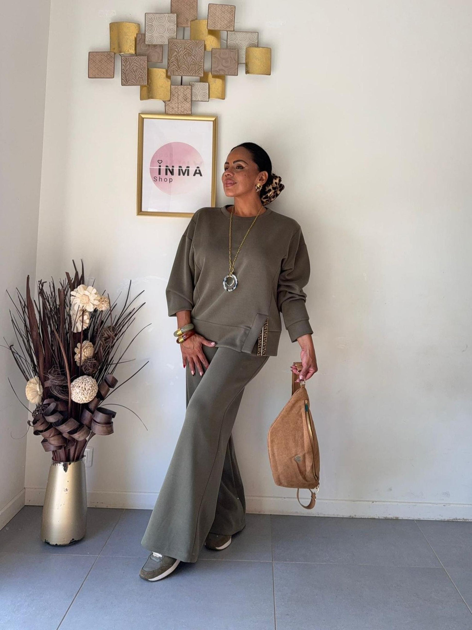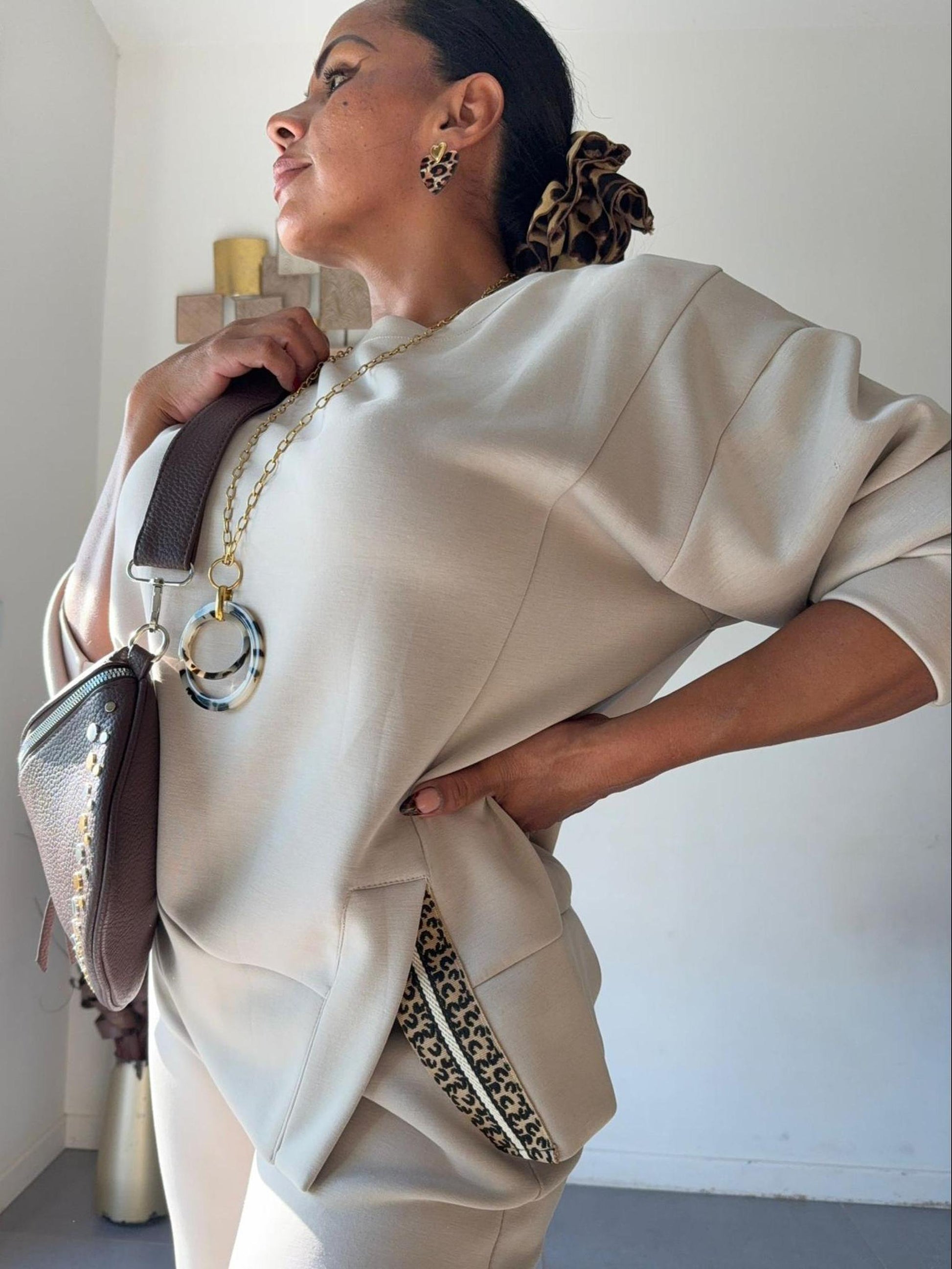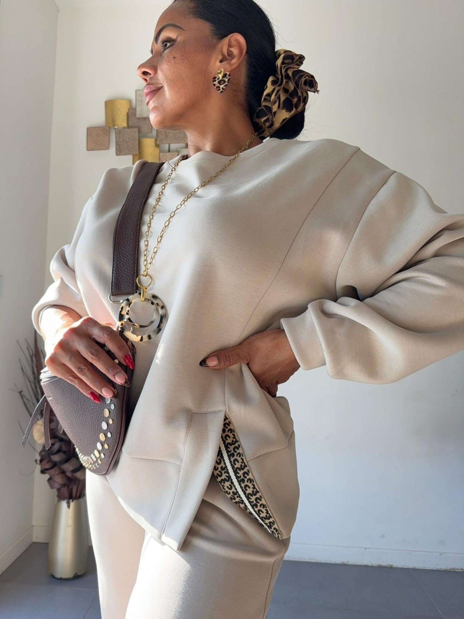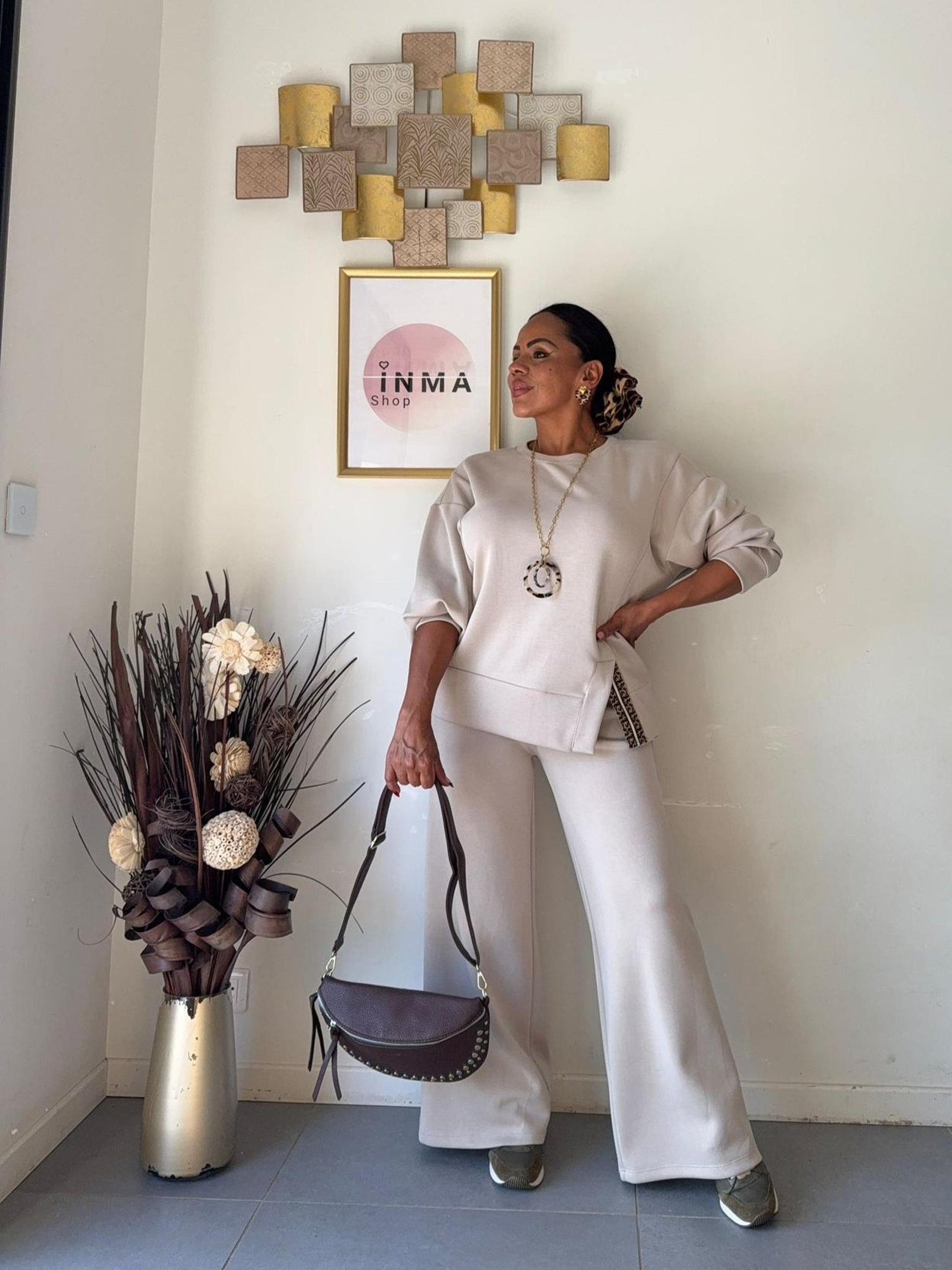 Alliez style et confort avec l’Ensemble Sophie, une tenue parfaite pour vos journées actives comme vos moments détente. Son pantalon fluide et son haut à coupe moderne créent un look chic et décontracté.