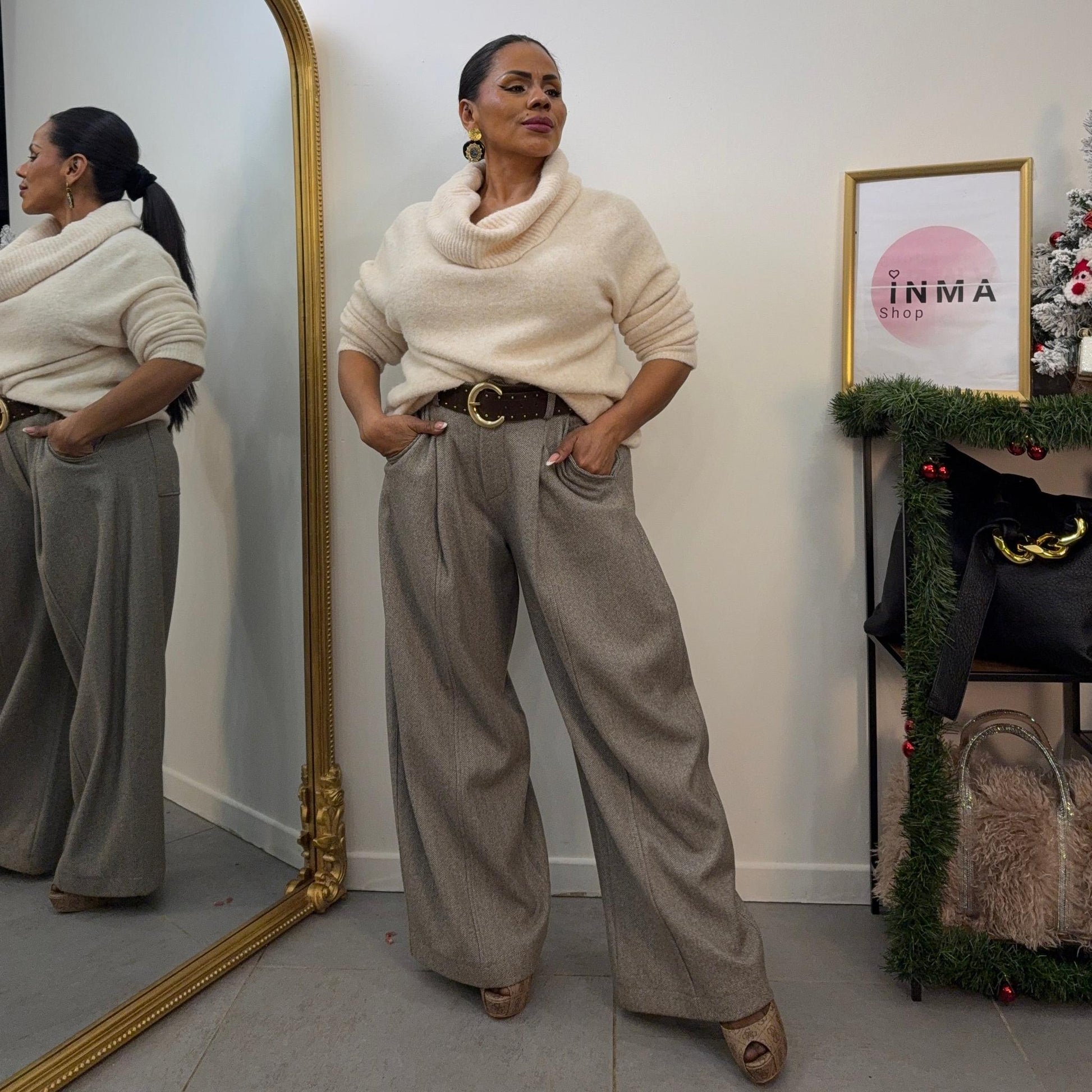Pantalon palazzo coupe large et fluide, idéal pour allonger la silhouette tout en offrant un confort maximal.
