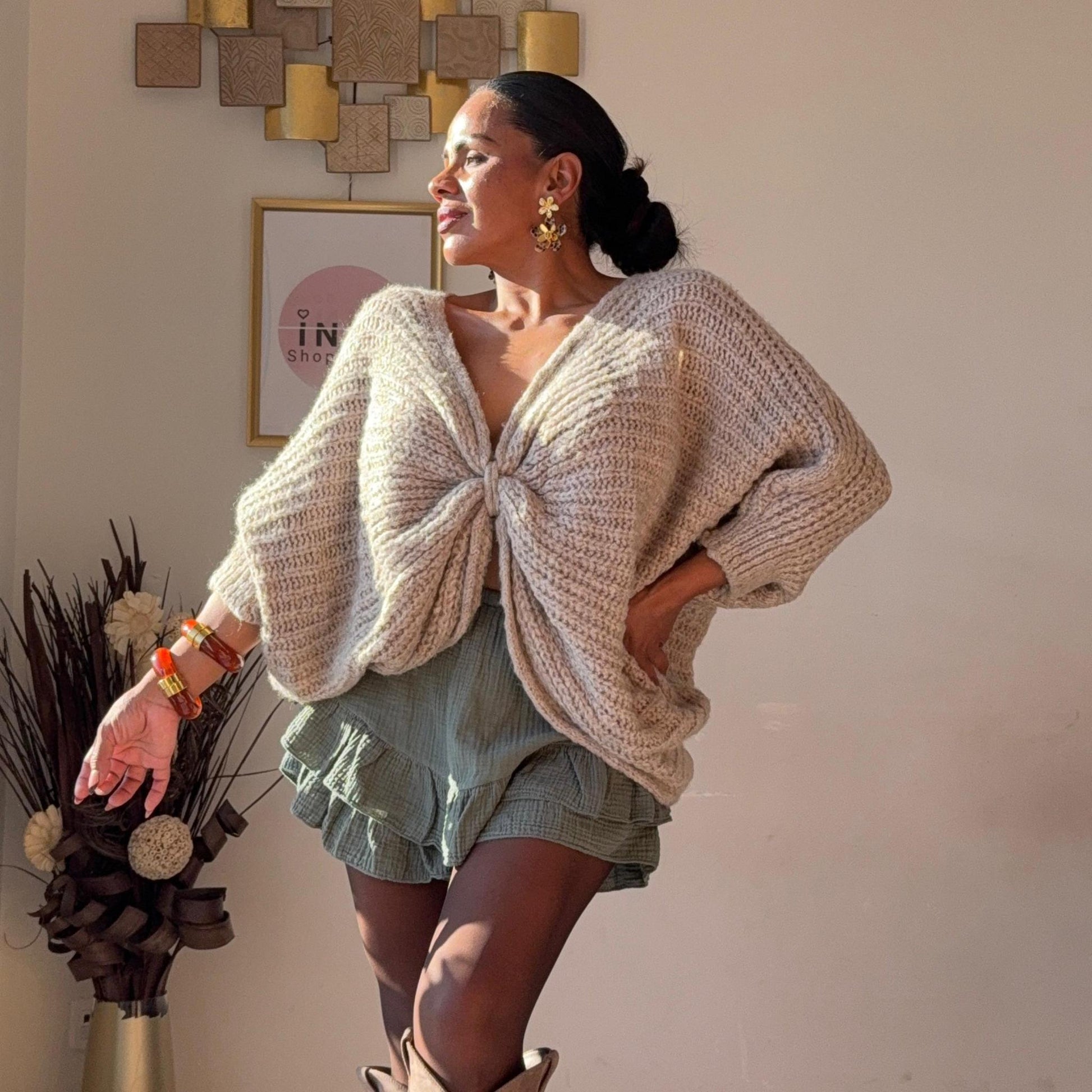 Succombez au charme du pull Papillon, pensé pour allier confort et féminité. Sa maille douce (10% laine) ne pique pas et vous enveloppe de chaleur tout en restant agréable sur la peau. Taille unique jusqu’au XXL, il s’adapte à toutes les silhouettes. Son détail noué peut se porter devant pour un esprit glamour ou dans le dos pour une touche raffinée, faisant de lui une pièce versatile et tendance. Disponible en plusieurs coloris pour illuminer vos looks d’automne-hiver.