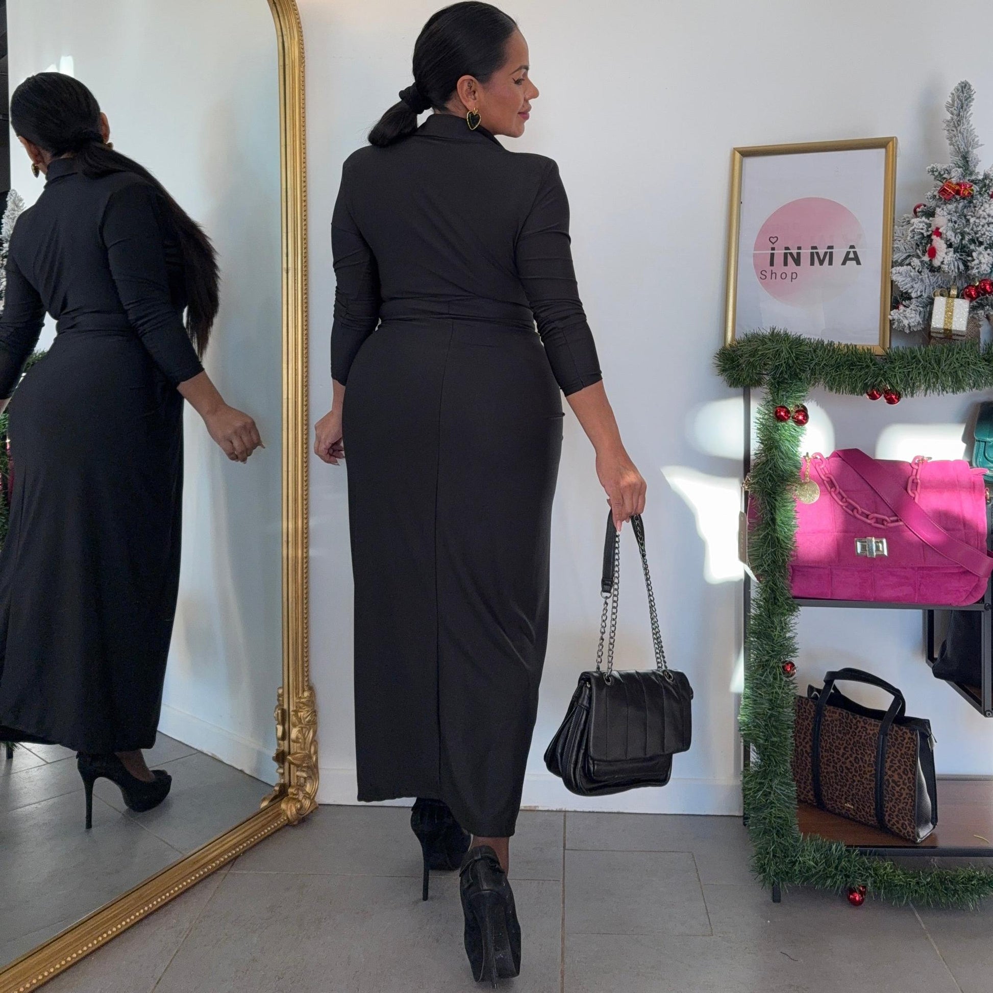Robe longue ultra-féminine avec détail twisté à la taille, qui sculpte la silhouette.