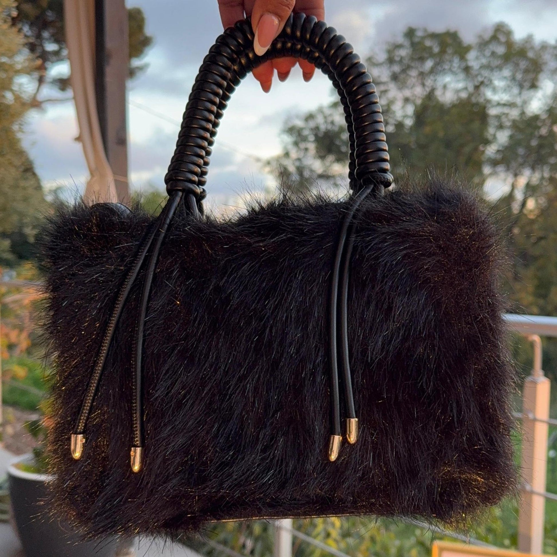 Le sac Diva allie audace et élégance. Sa fausse fourrure noire ultra-douce lui donne une allure raffinée, tandis que son anse tressée apporte une touche moderne et stylée.