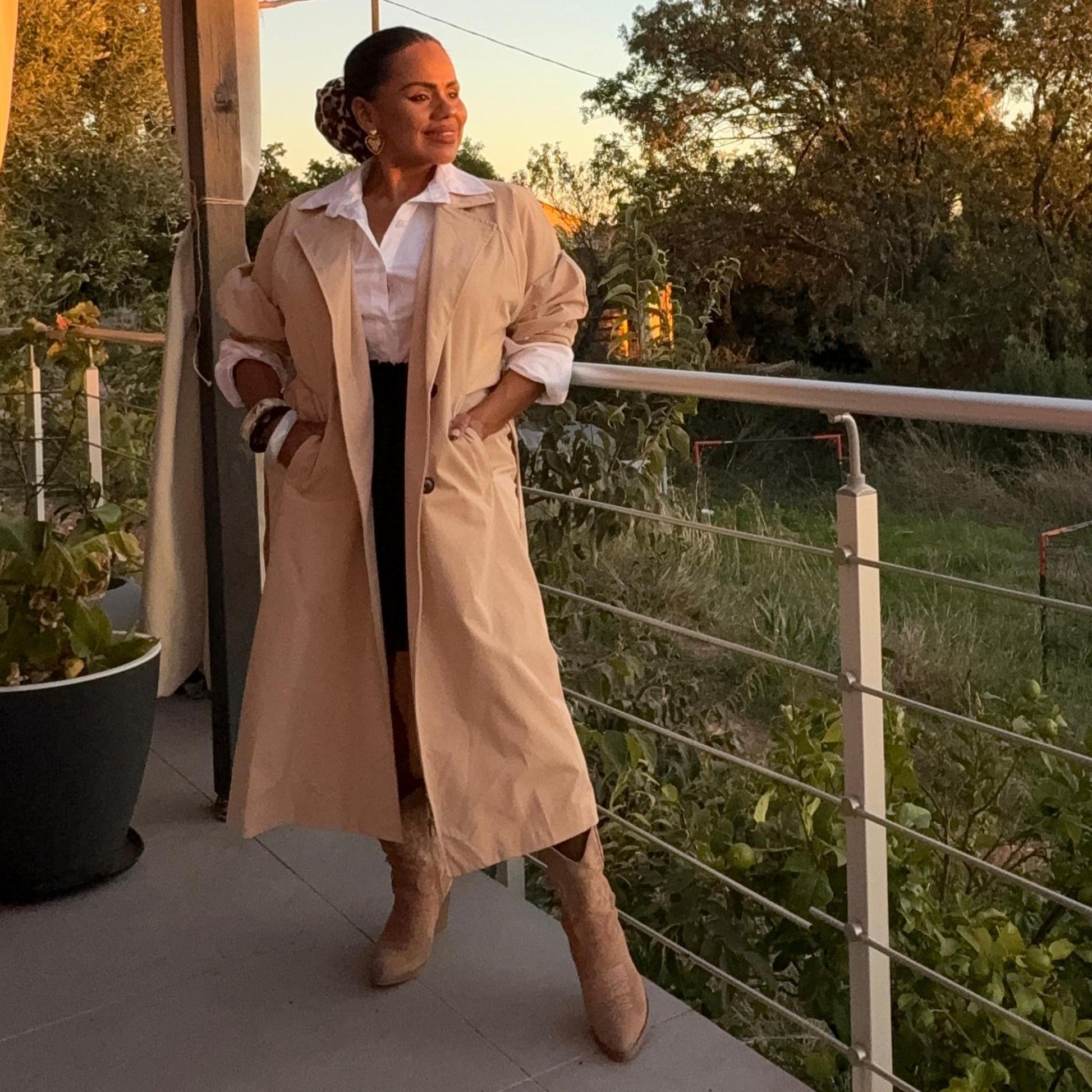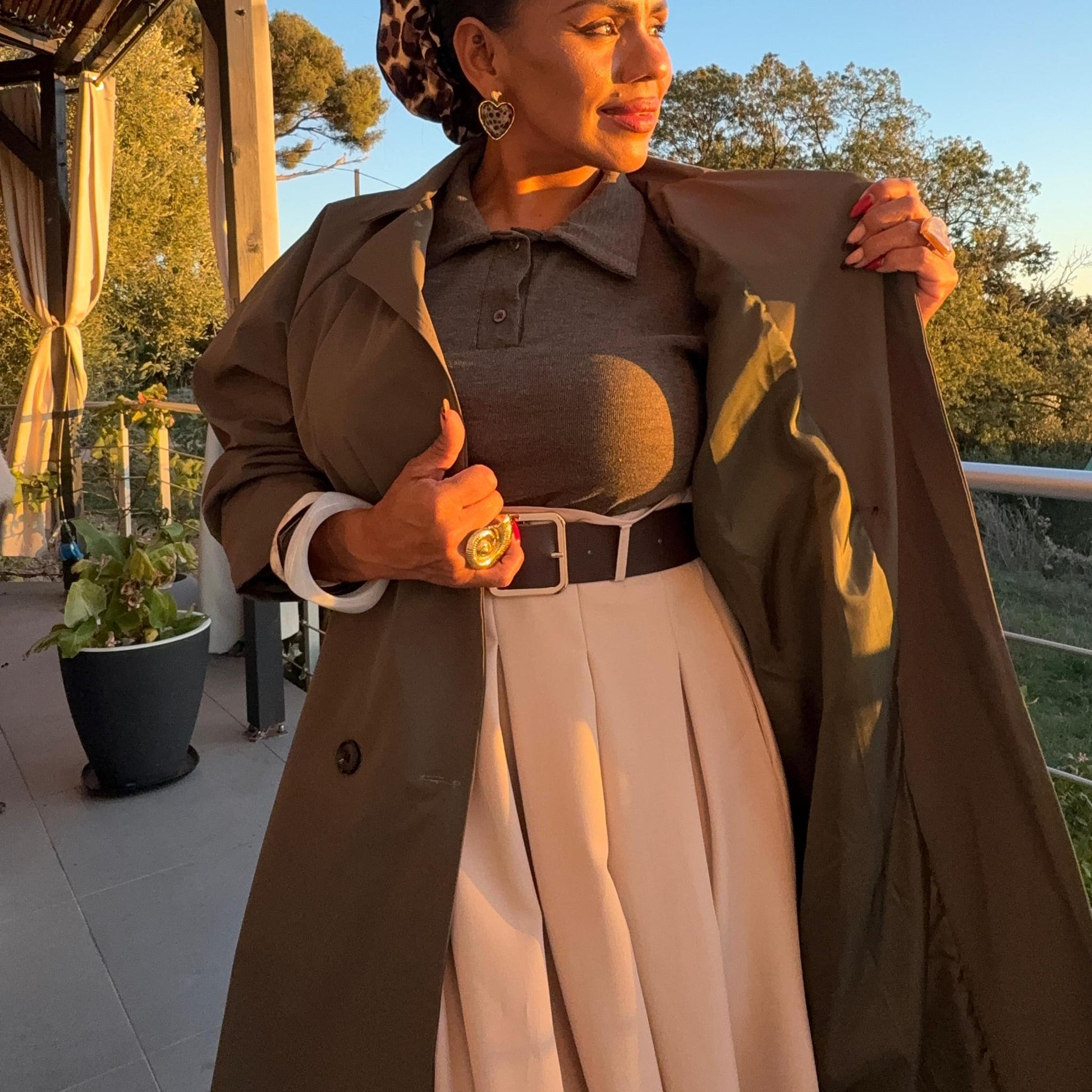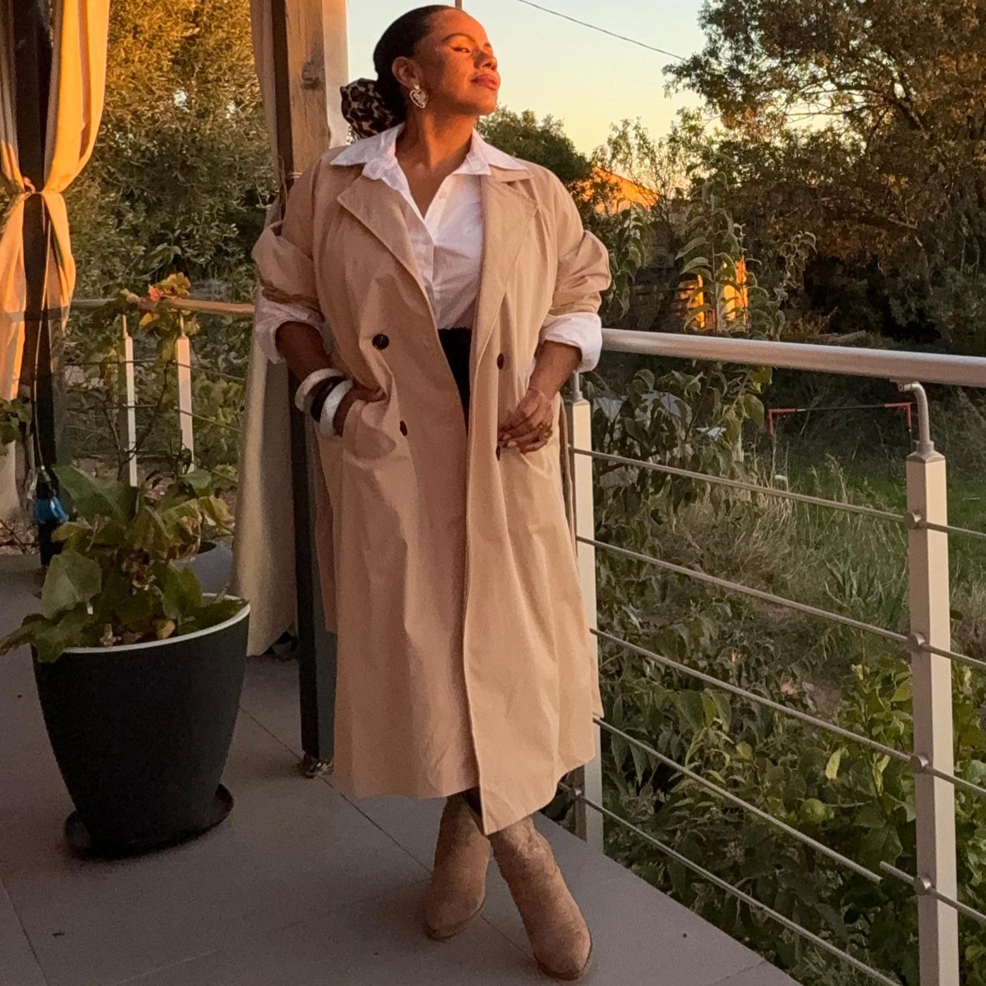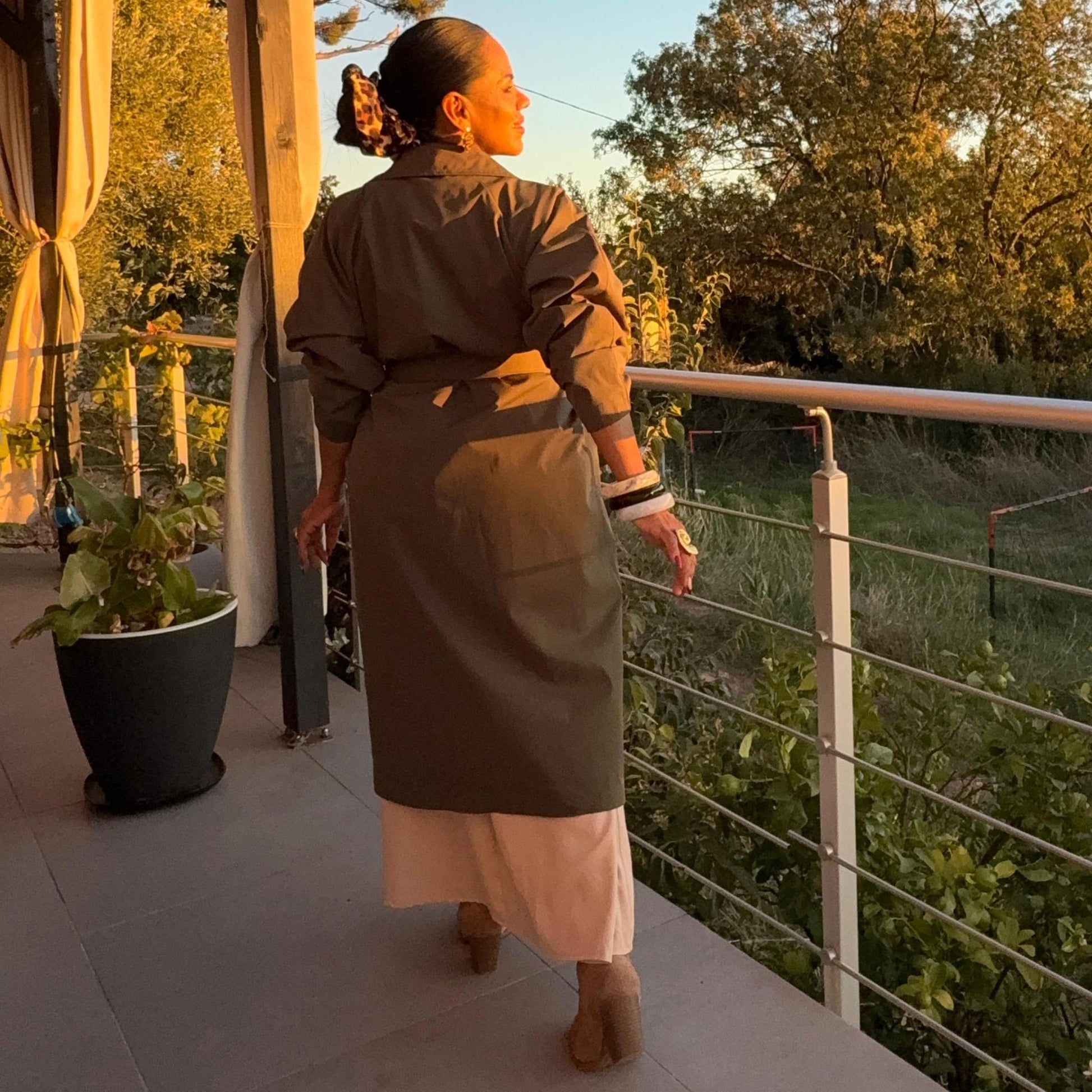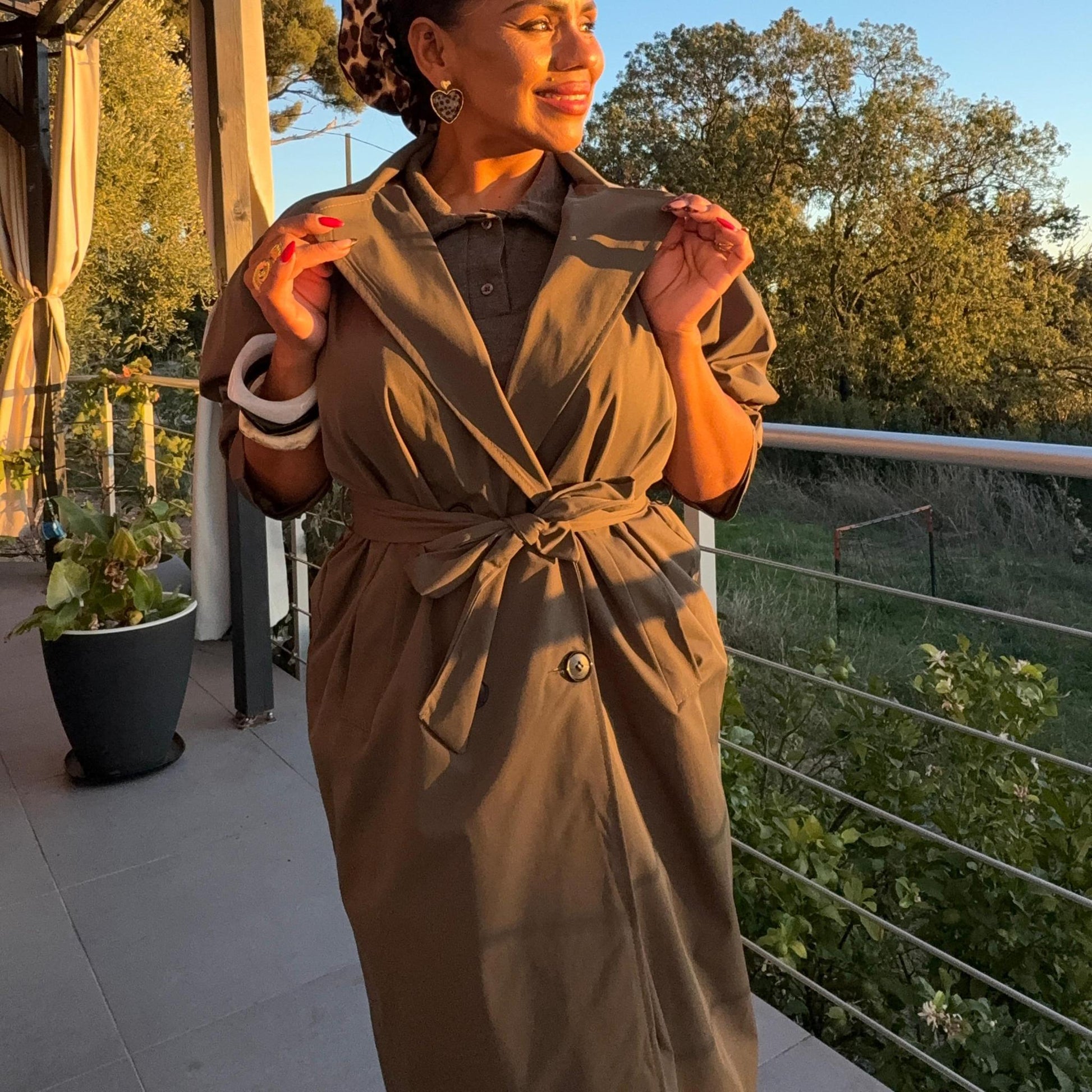 Le trench Elisa incarne le chic naturel et la confiance tranquille. Avec sa coupe fluide, ses manches légèrement bouffantes et sa ceinture à nouer, il redessine la silhouette sans effort.