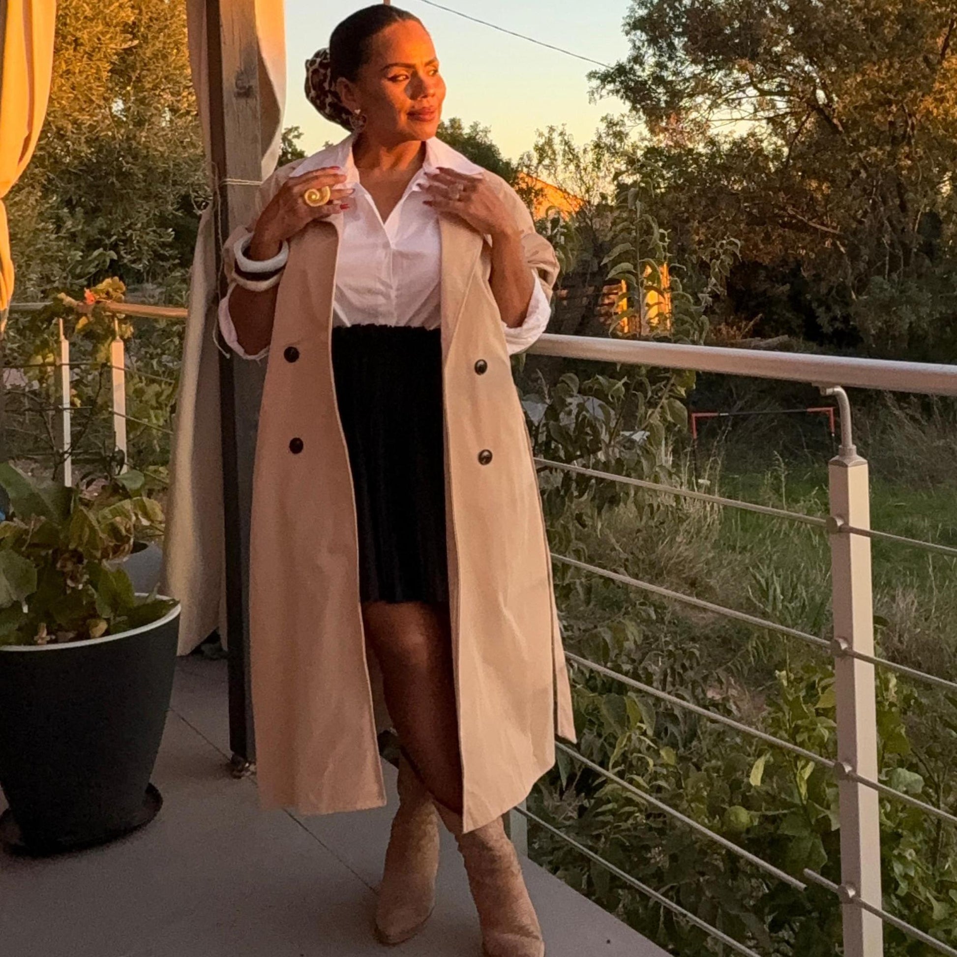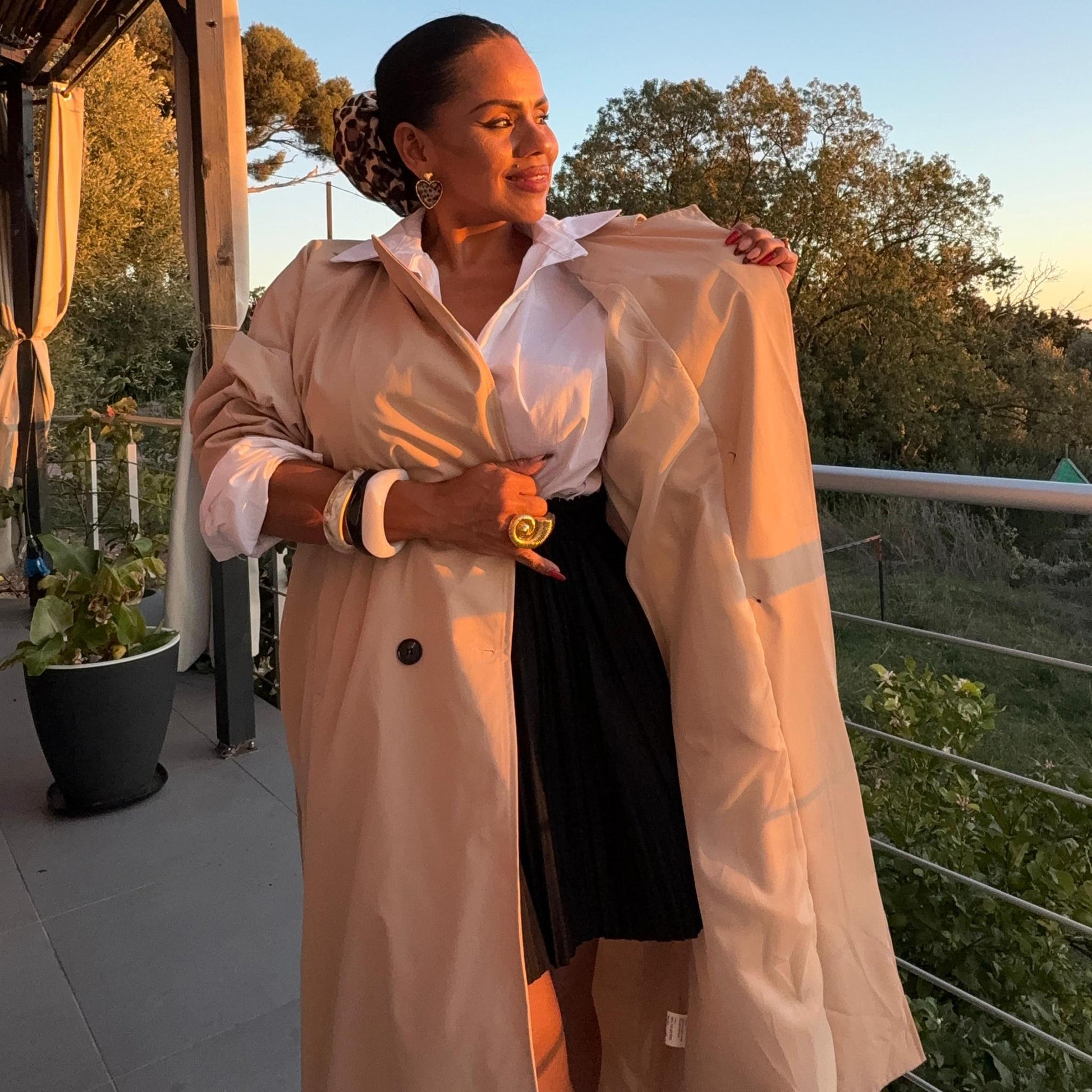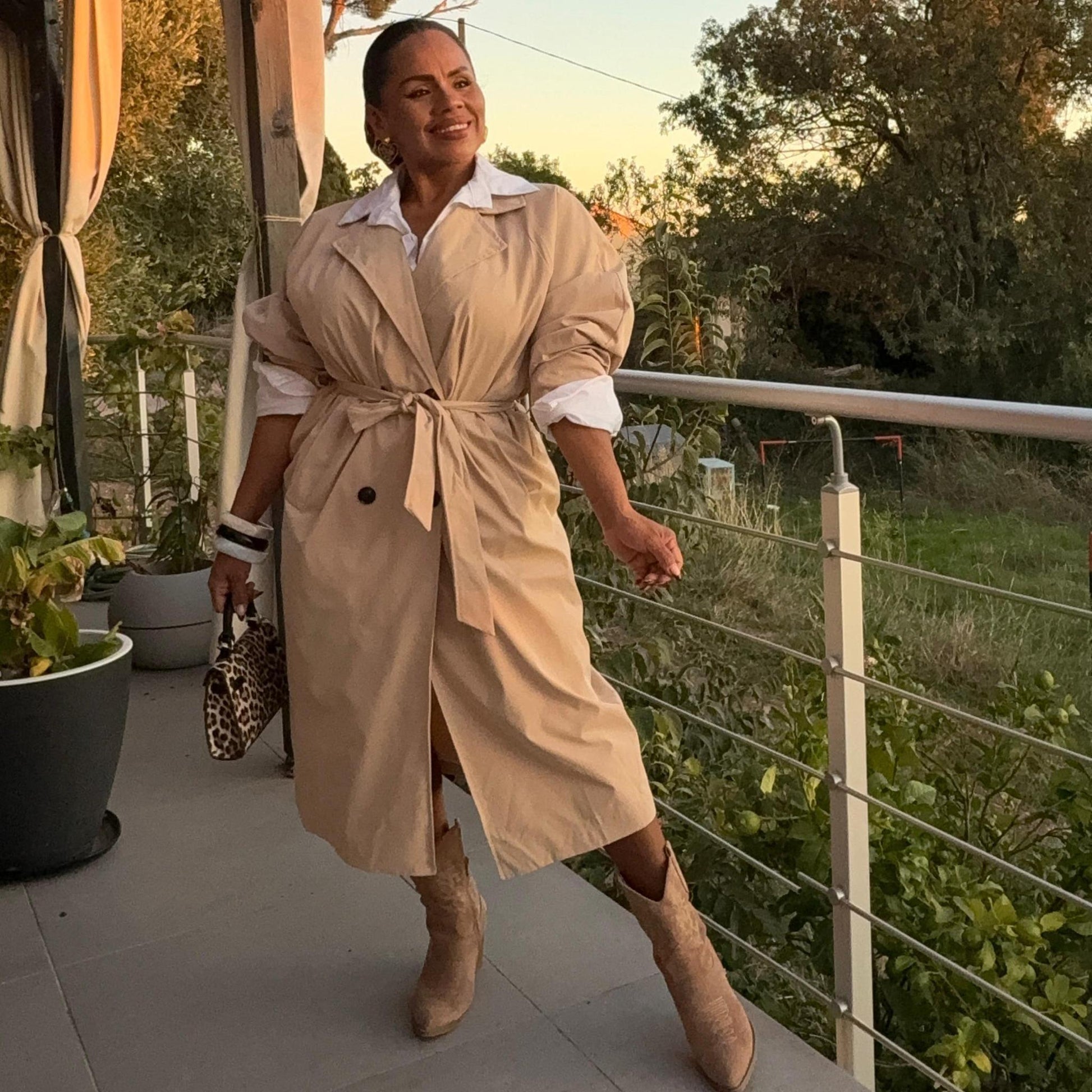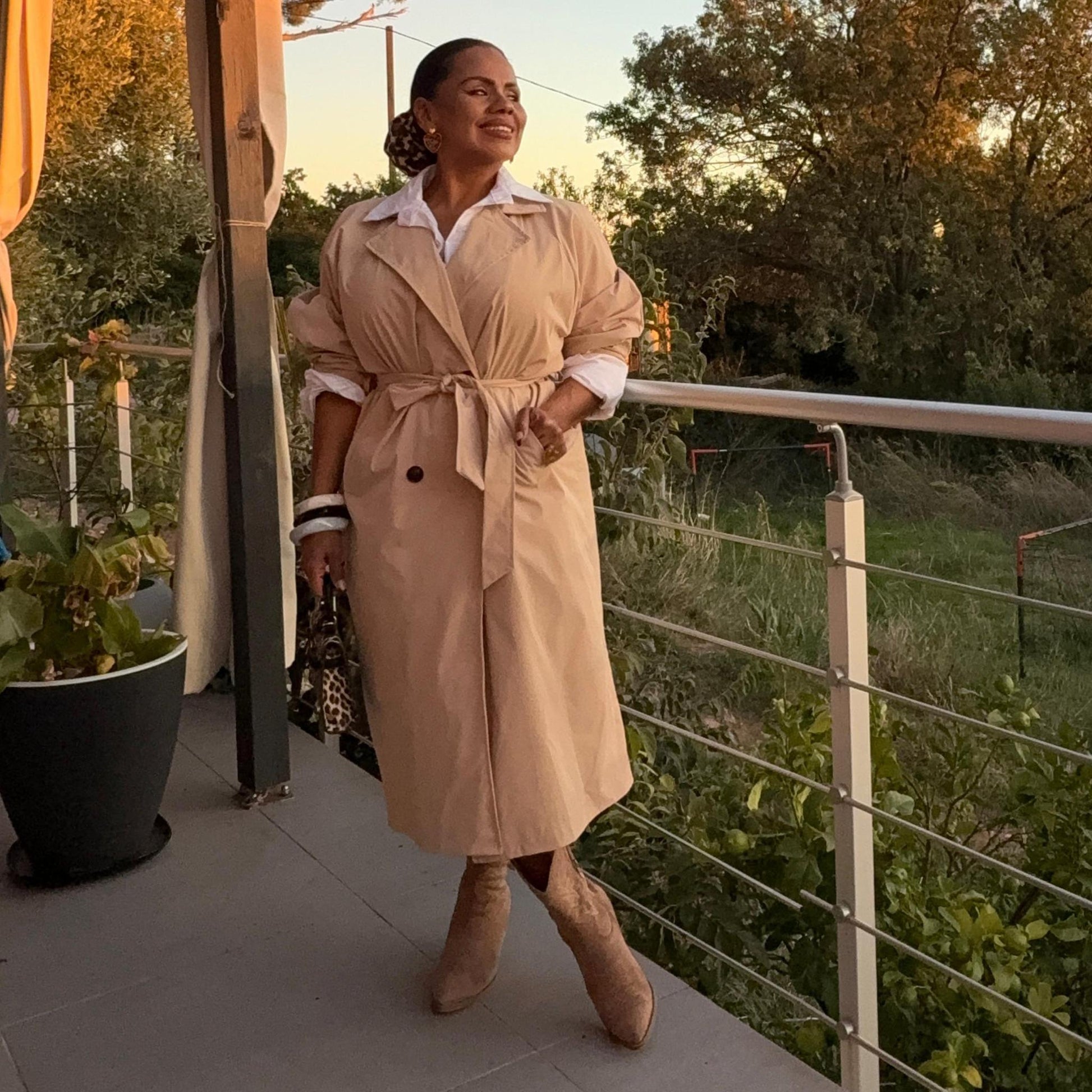 Le trench Elisa incarne le chic naturel et la confiance tranquille. Avec sa coupe fluide, ses manches légèrement bouffantes et sa ceinture à nouer, il redessine la silhouette sans effort.
