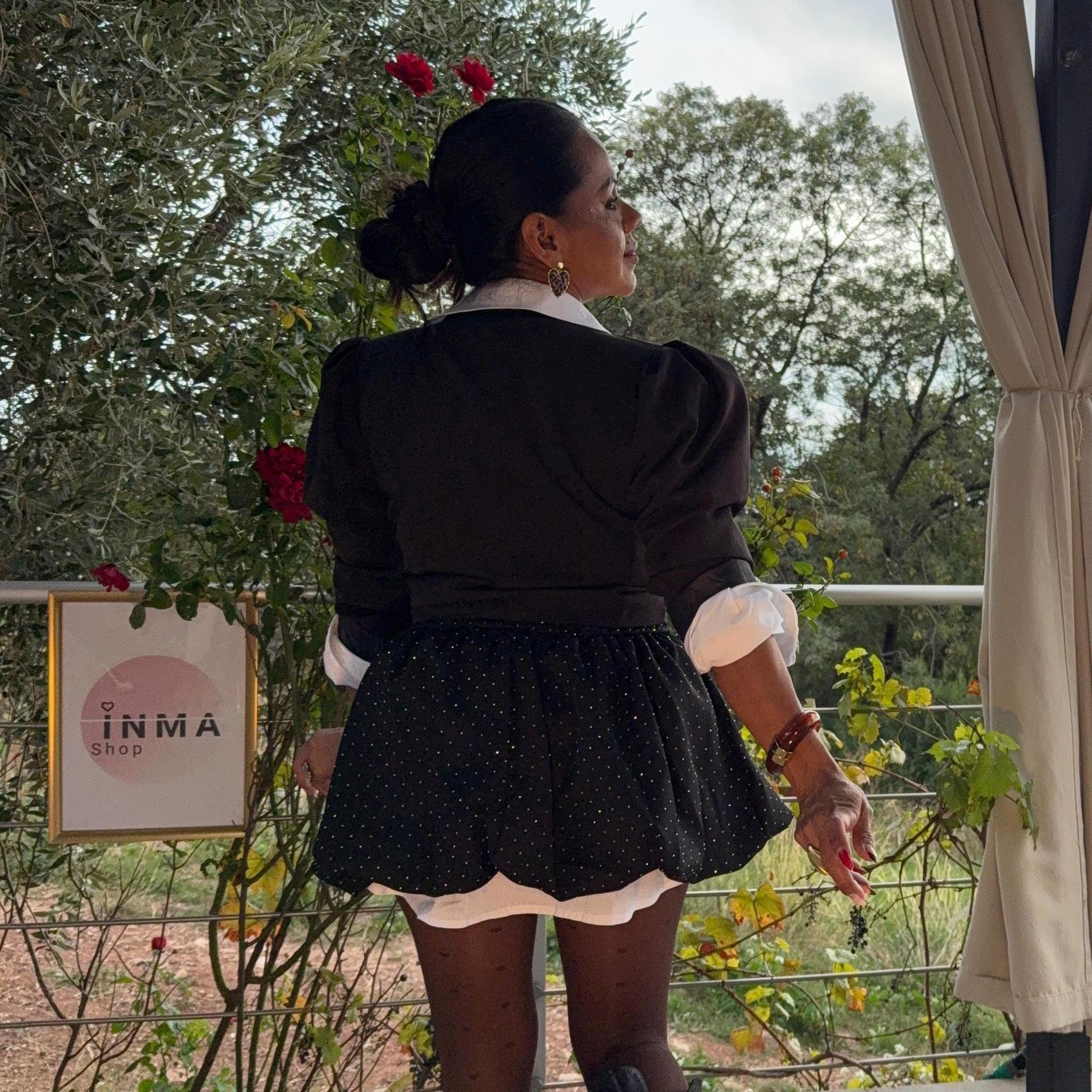 La veste Paola revisite le blazer classique avec ses épaules structurées et sa coupe courte ultra féminine.