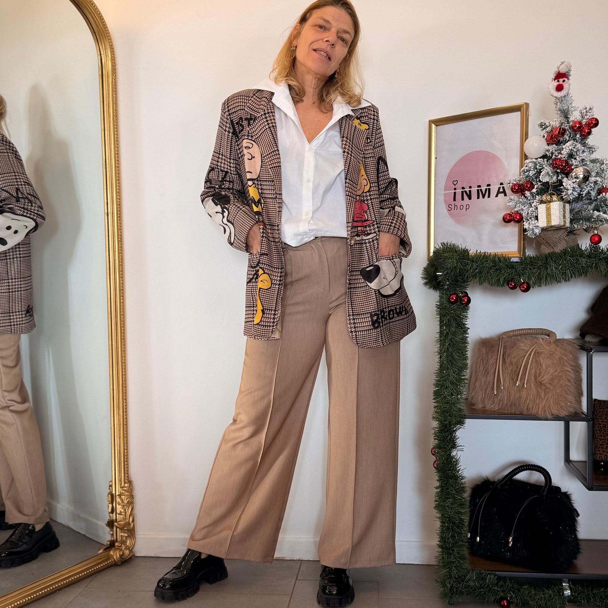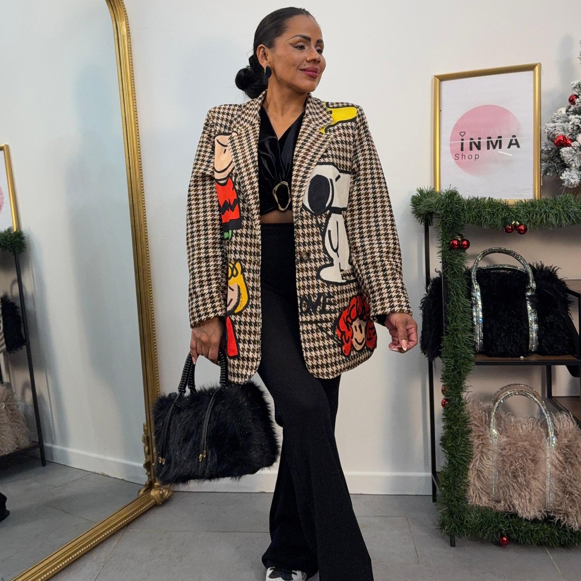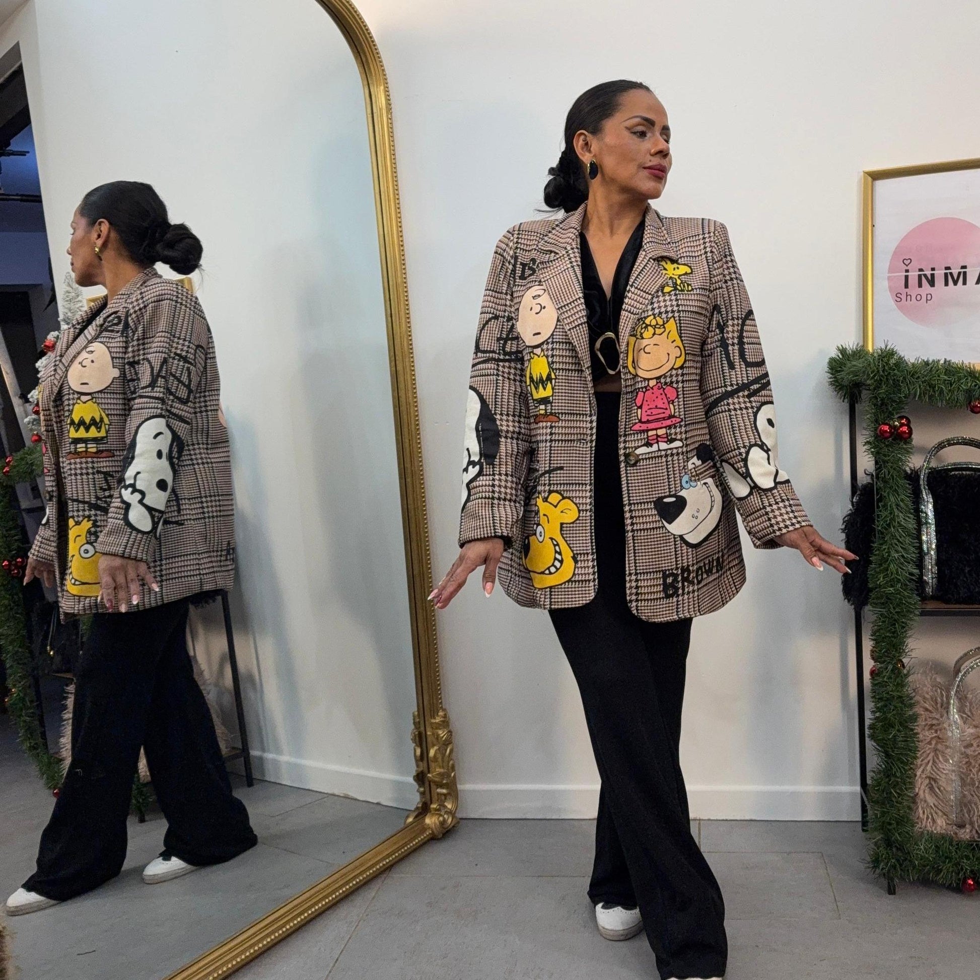 Une veste oversize au look cartoon irrésistible ! Motifs Snoopy et Peanuts brodés tout autour, coupe droite confortable et style street chic assumé.