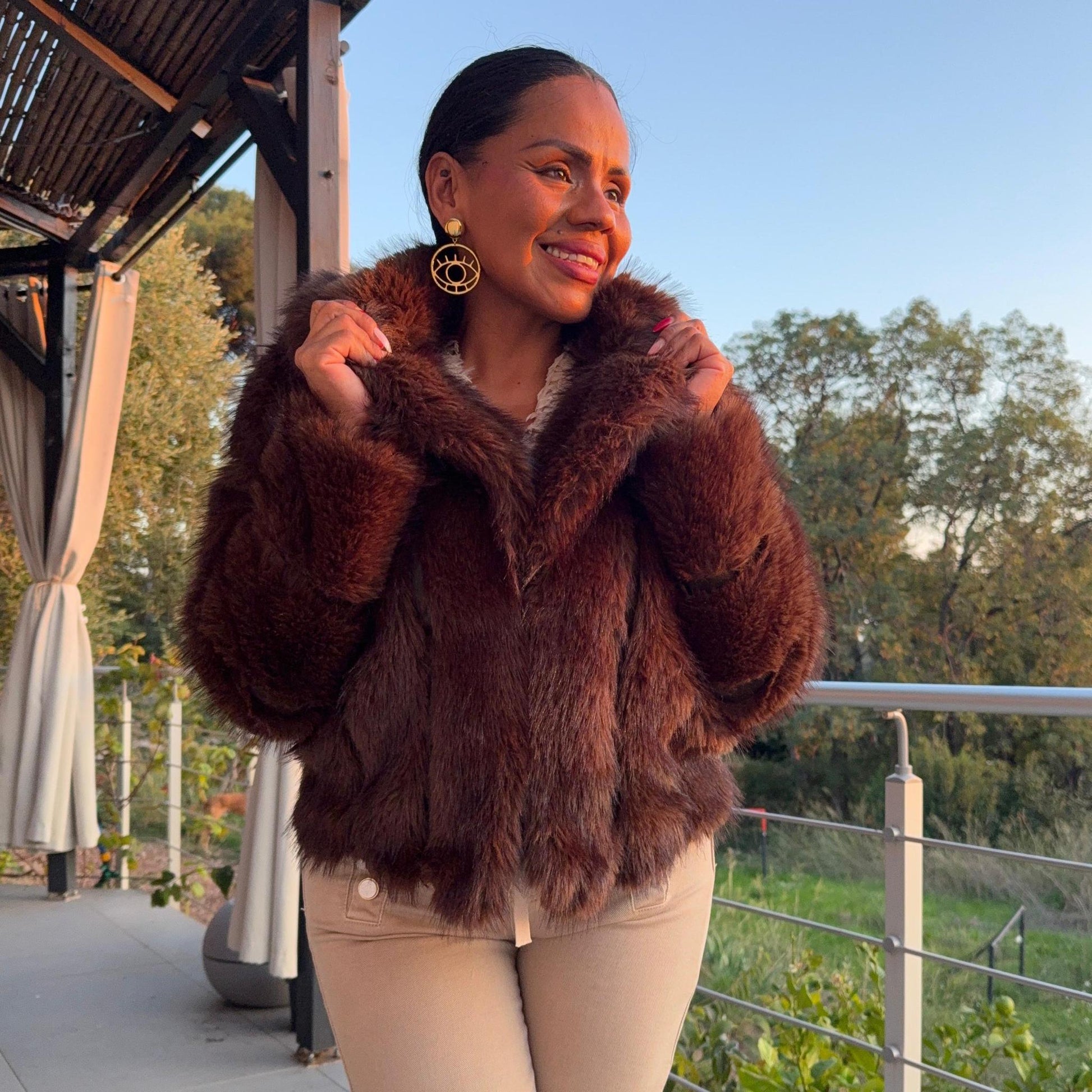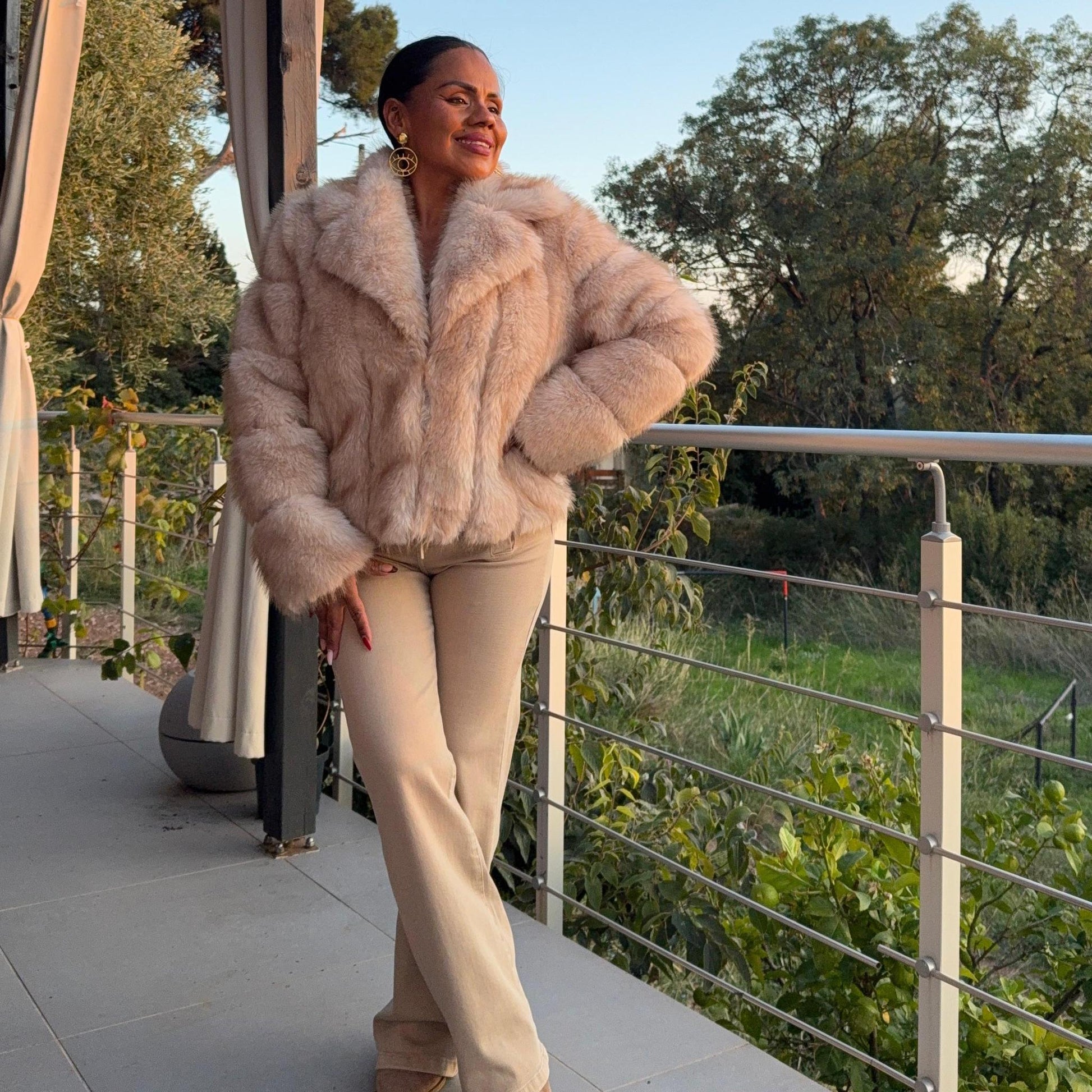 Sa fausse fourrure dense et ultra-douce enveloppe la silhouette d’une chaleur élégante.