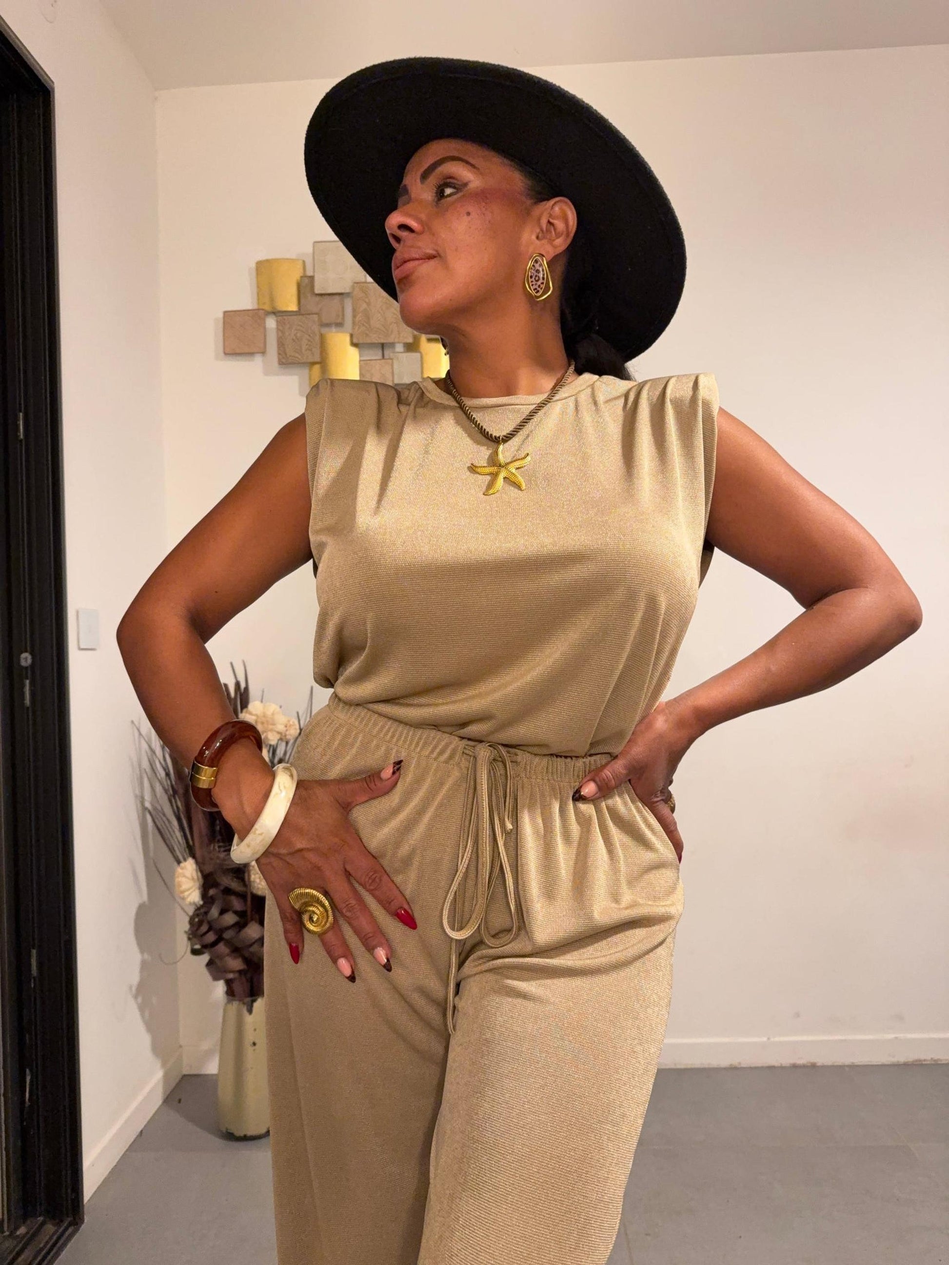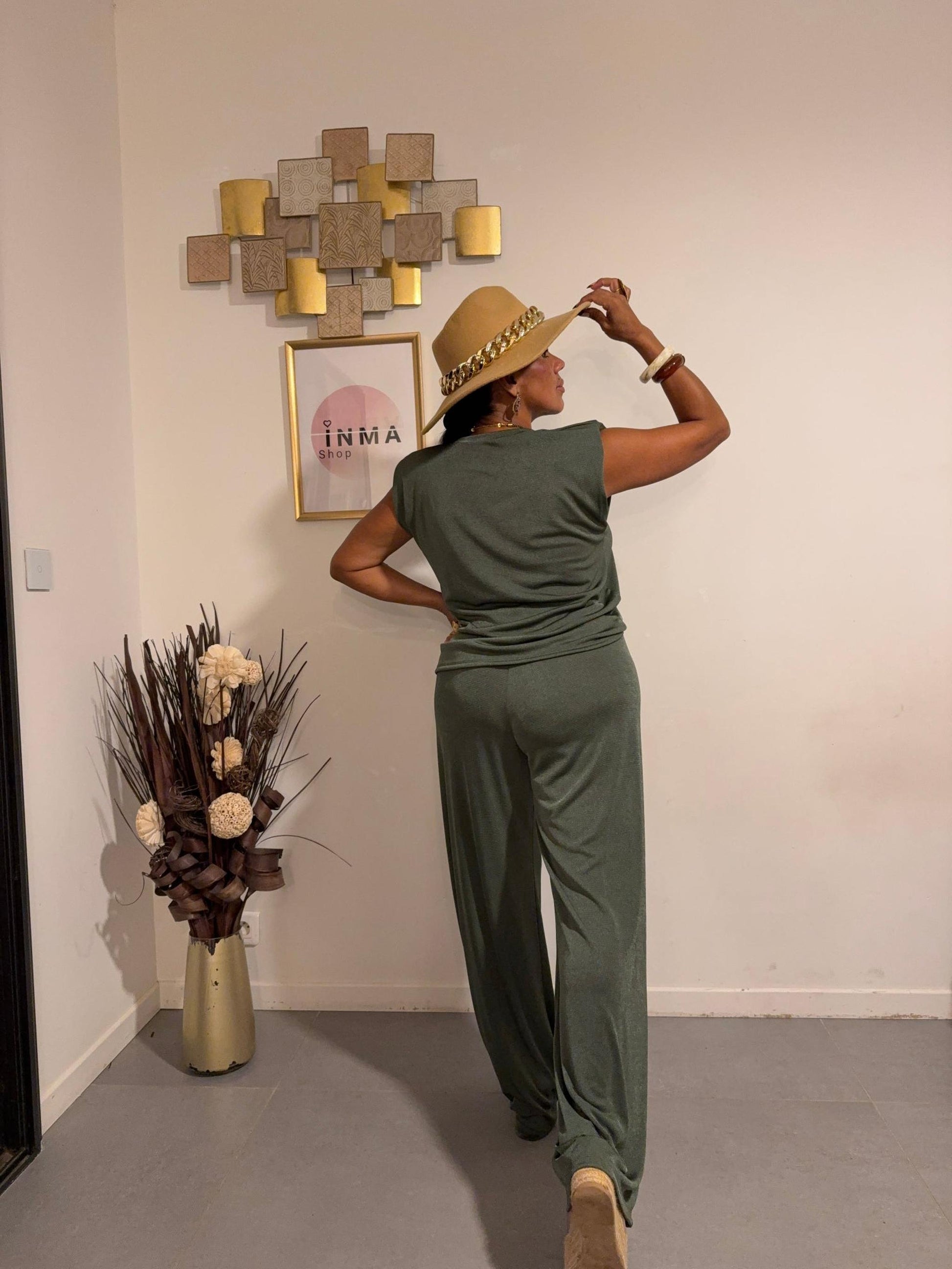 L’Ensemble Louise associe confort et élégance. Composé d’un haut sans manches structuré et d’un pantalon fluide taille élastiquée, il offre une allure moderne et décontractée à la fois.