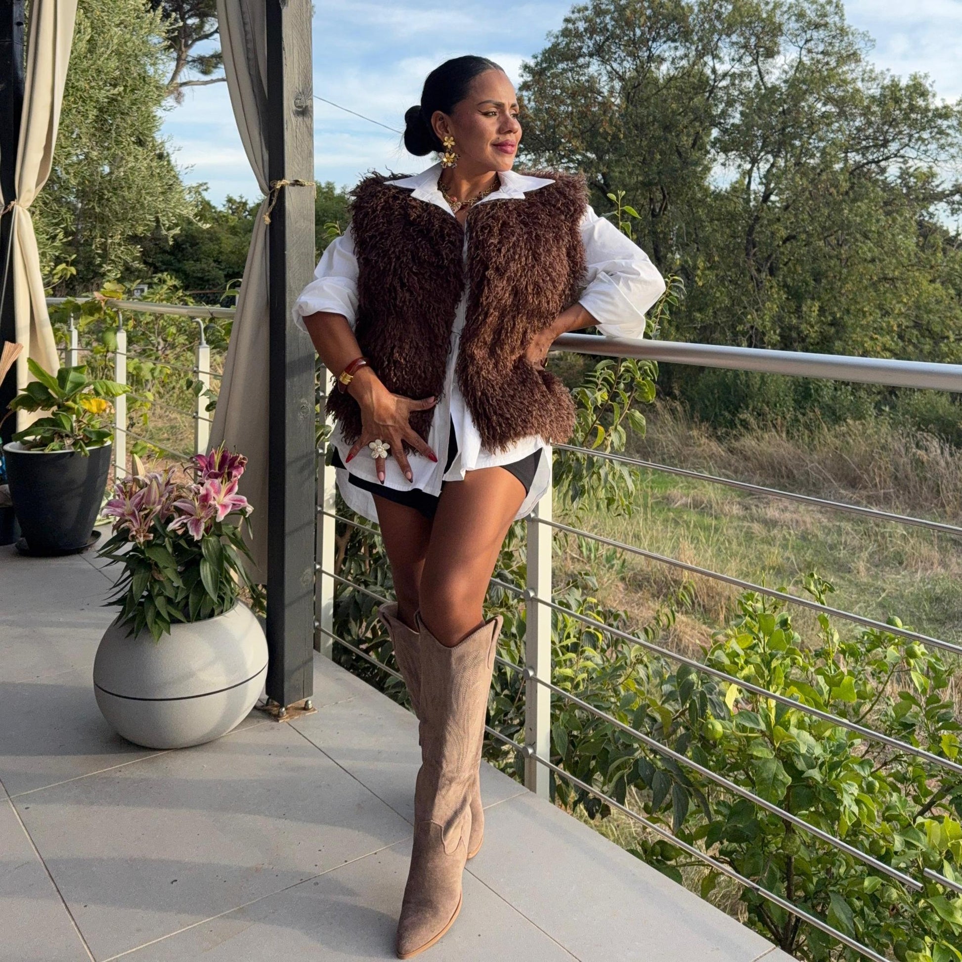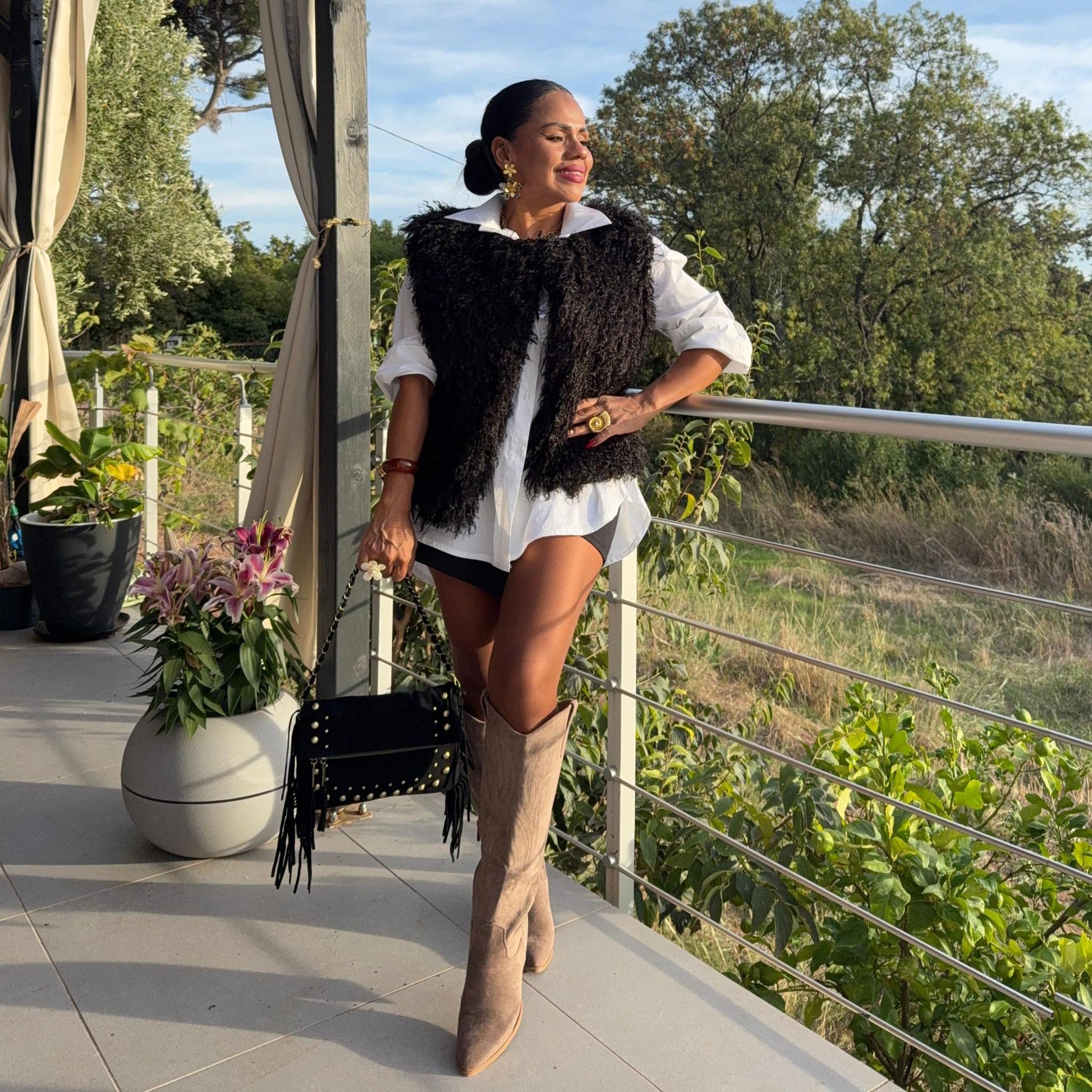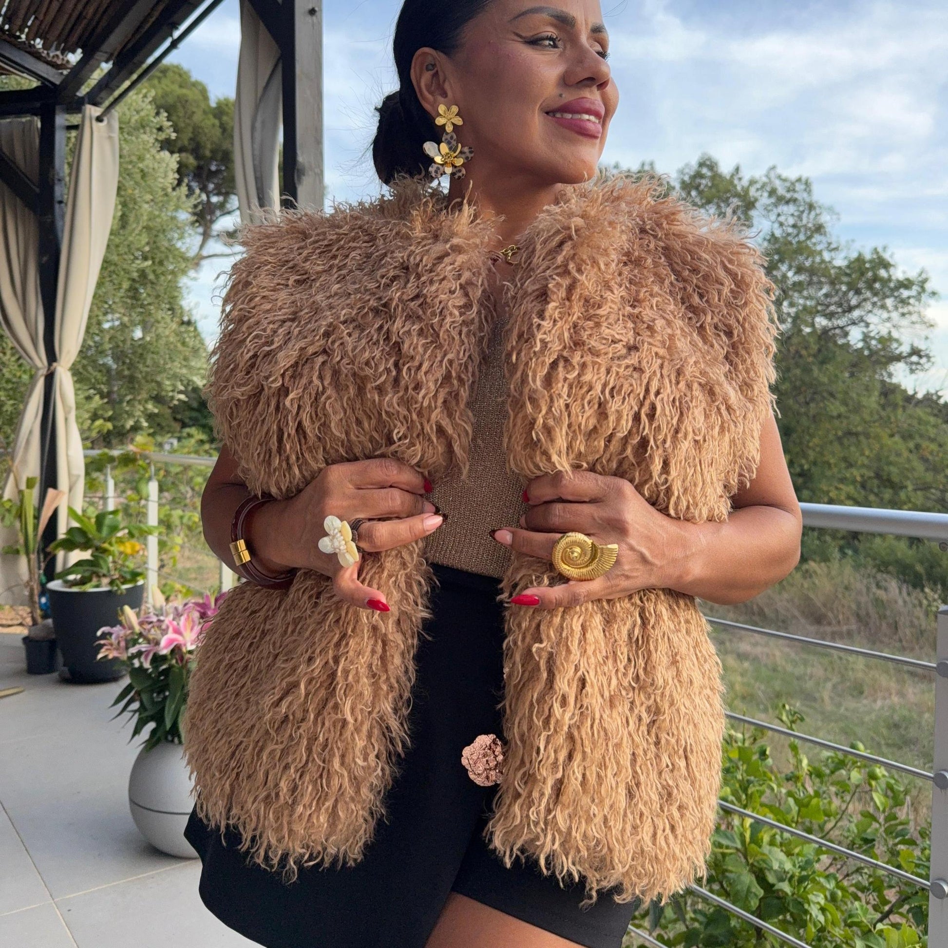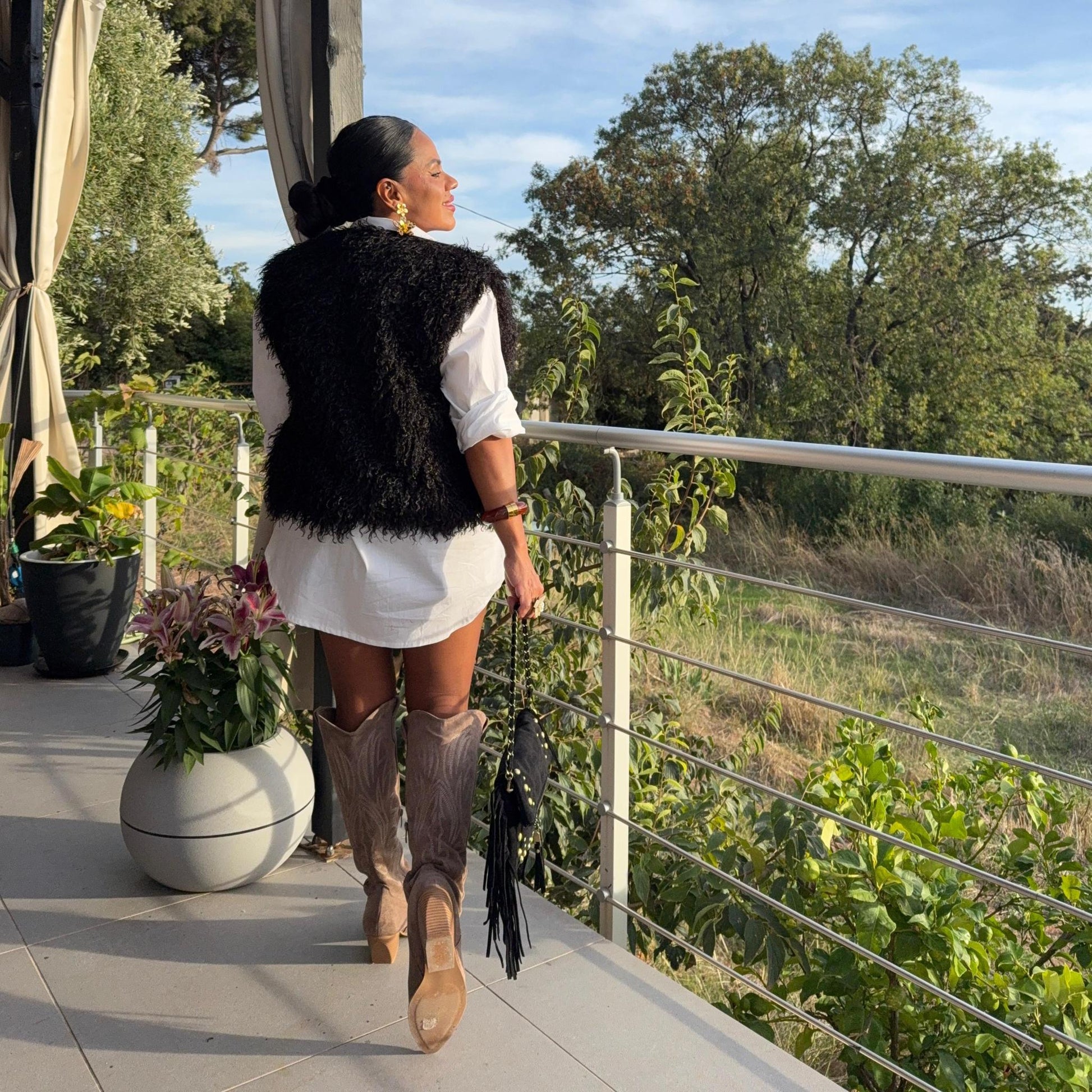 Avec son effet fourrure longue et sa coupe sans manches, le Gilet Madrid est la pièce tendance qui réchauffe vos looks tout en affirmant votre style. Il se porte facilement sur une chemise, un pull ou même une robe pour un rendu chic et audacieux.