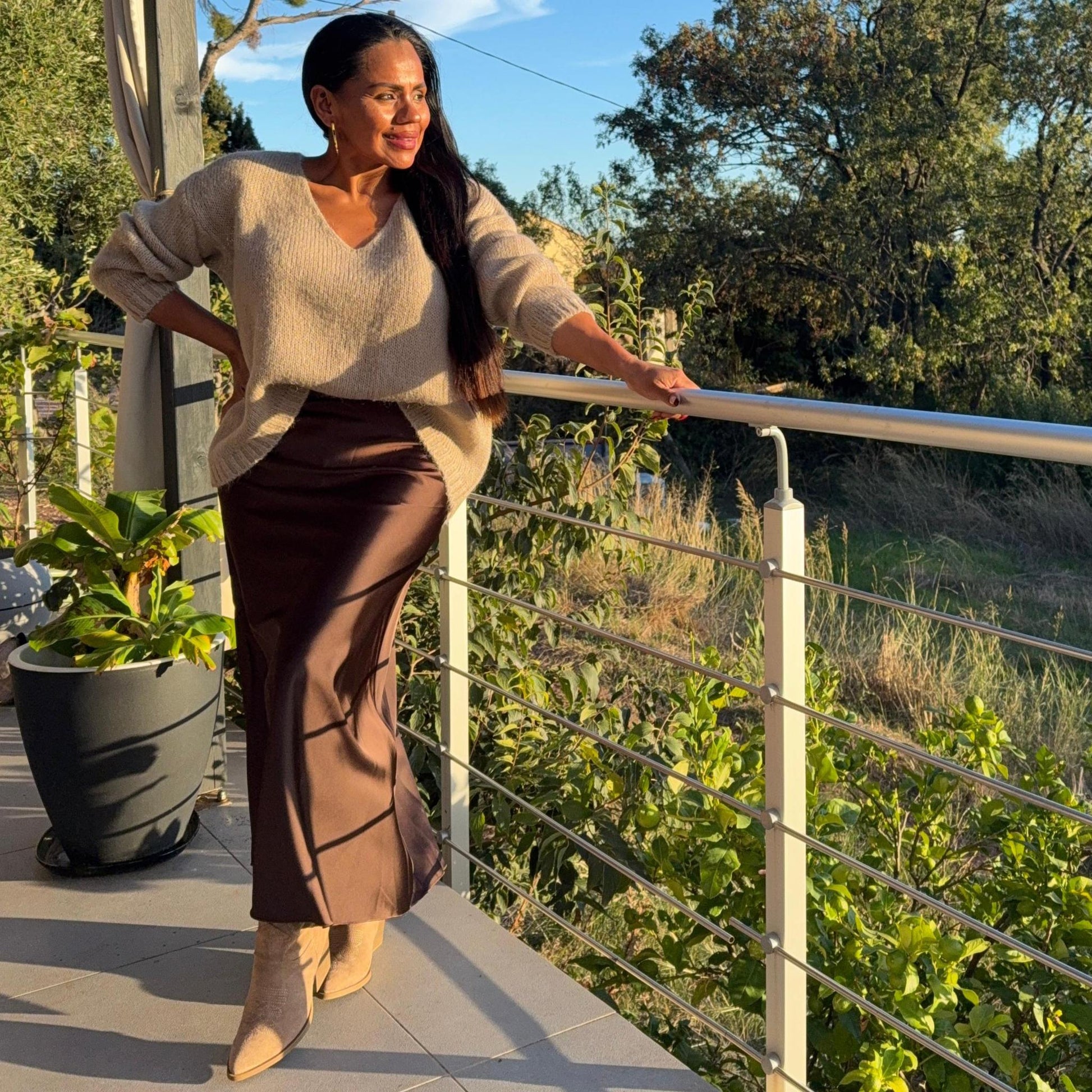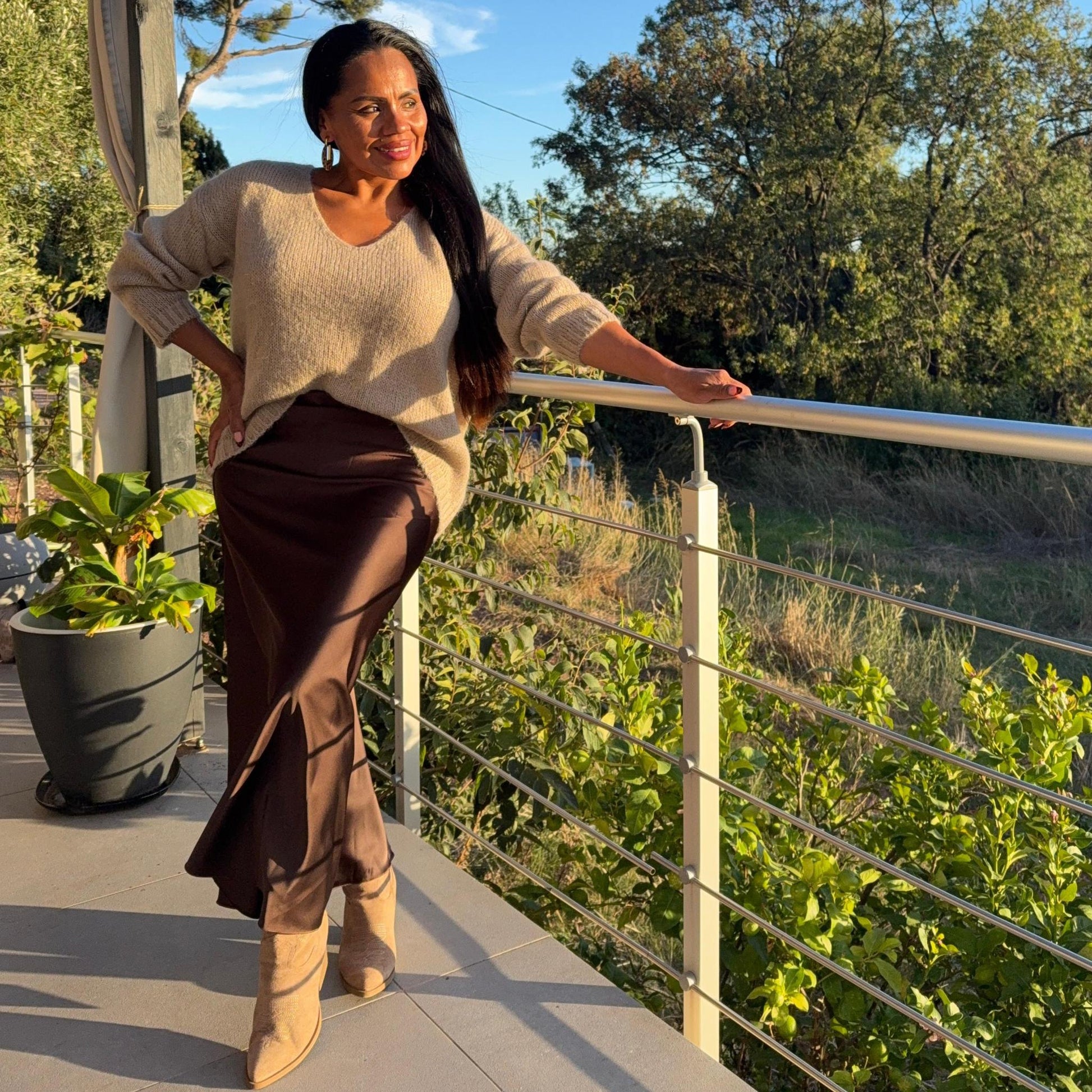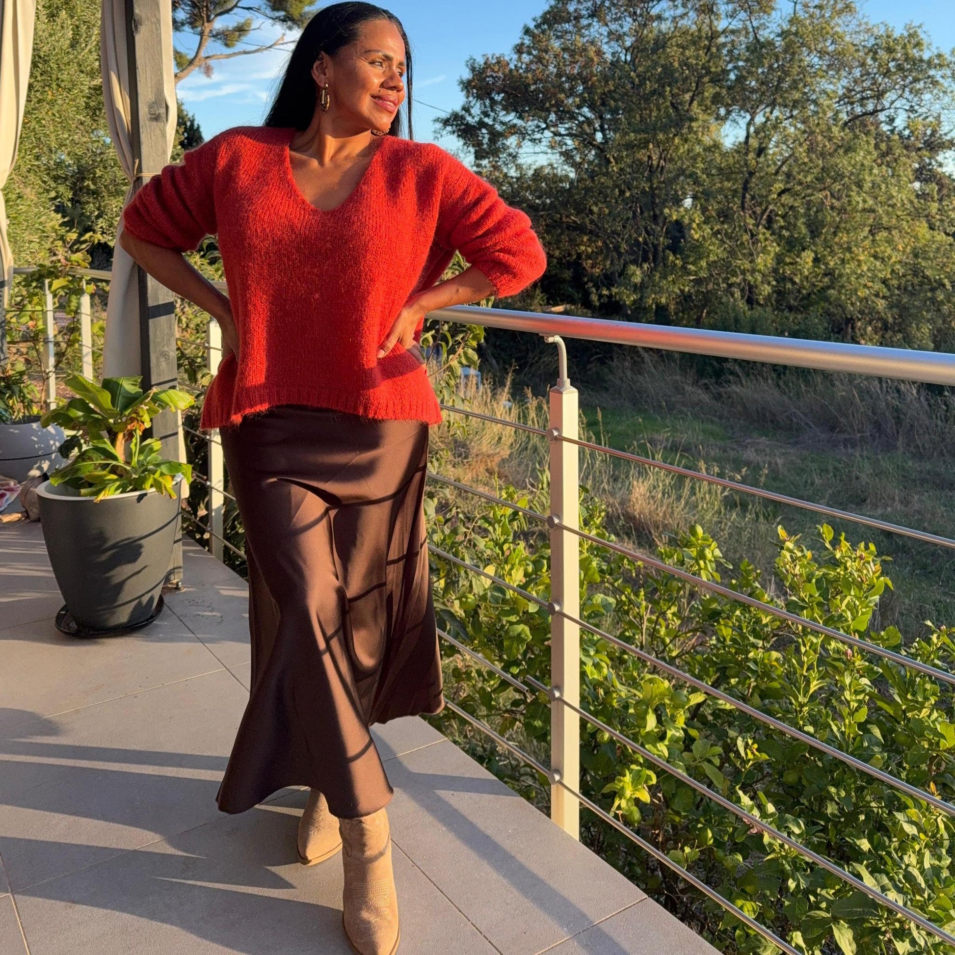 Le mohair, réputée pour sa finesse et sa chaleur sans lourdeur, en fait un indispensable de la mi-saison comme de l’hiver. Que ce soit porté avec une jupe fluide ou un jean, ce pull apporte une touche chic et naturelle à vos tenues.