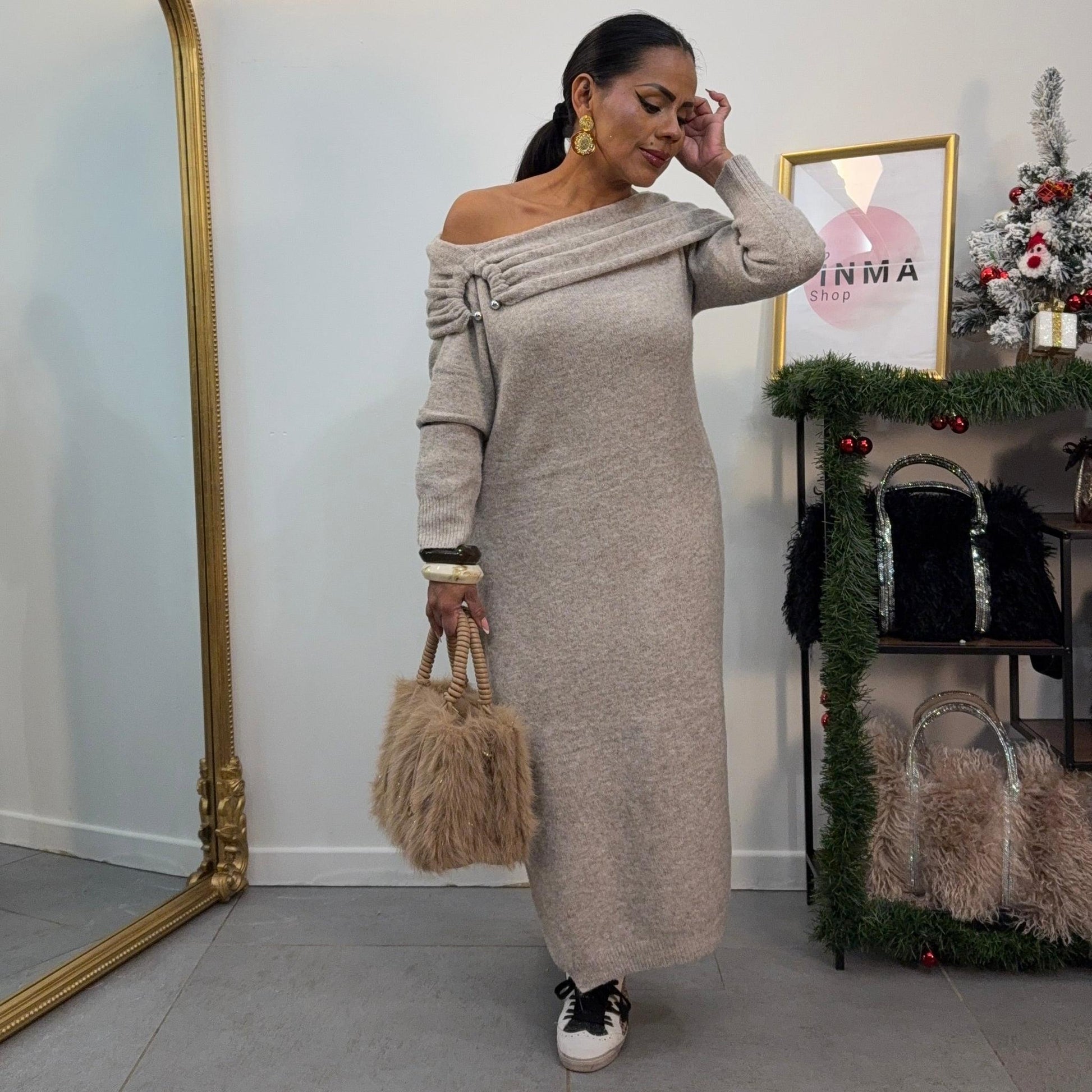 Une robe pull chaude, douce et hyper féminine grâce à son col retombant qui se porte joliment sur l’épaule. Sa coupe longue élance la silhouette tout en restant ultra confortable au quotidien.