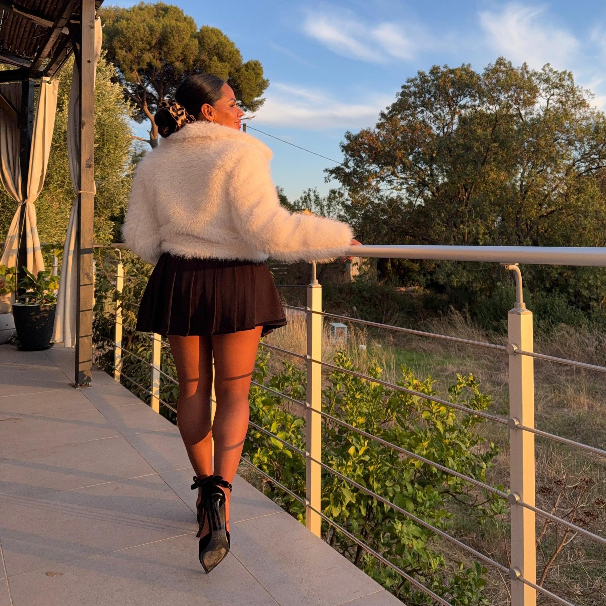 La Veste Paris apporte une touche chic et glamour à vos tenues. Douce et enveloppante, elle se distingue par son effet fausse fourrure qui sublime instantanément votre silhouette. Idéale pour vos soirées ou pour réchauffer vos looks du quotidien.