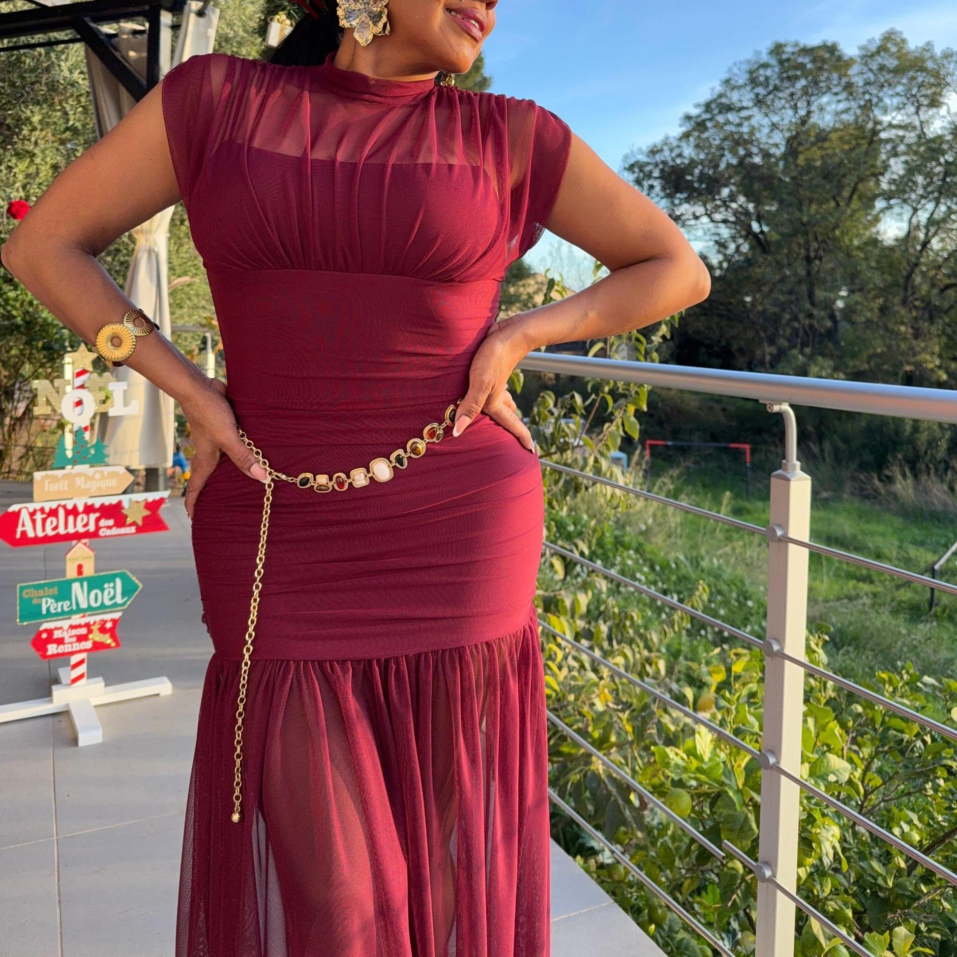 La robe Diva Bordeaux est la pièce idéale pour sublimer vos soirées et grands événements. Sa coupe longue et fluide épouse les formes tout en restant confortable, grâce à une matière stretch qui s’adapte parfaitement du 36 au 42.