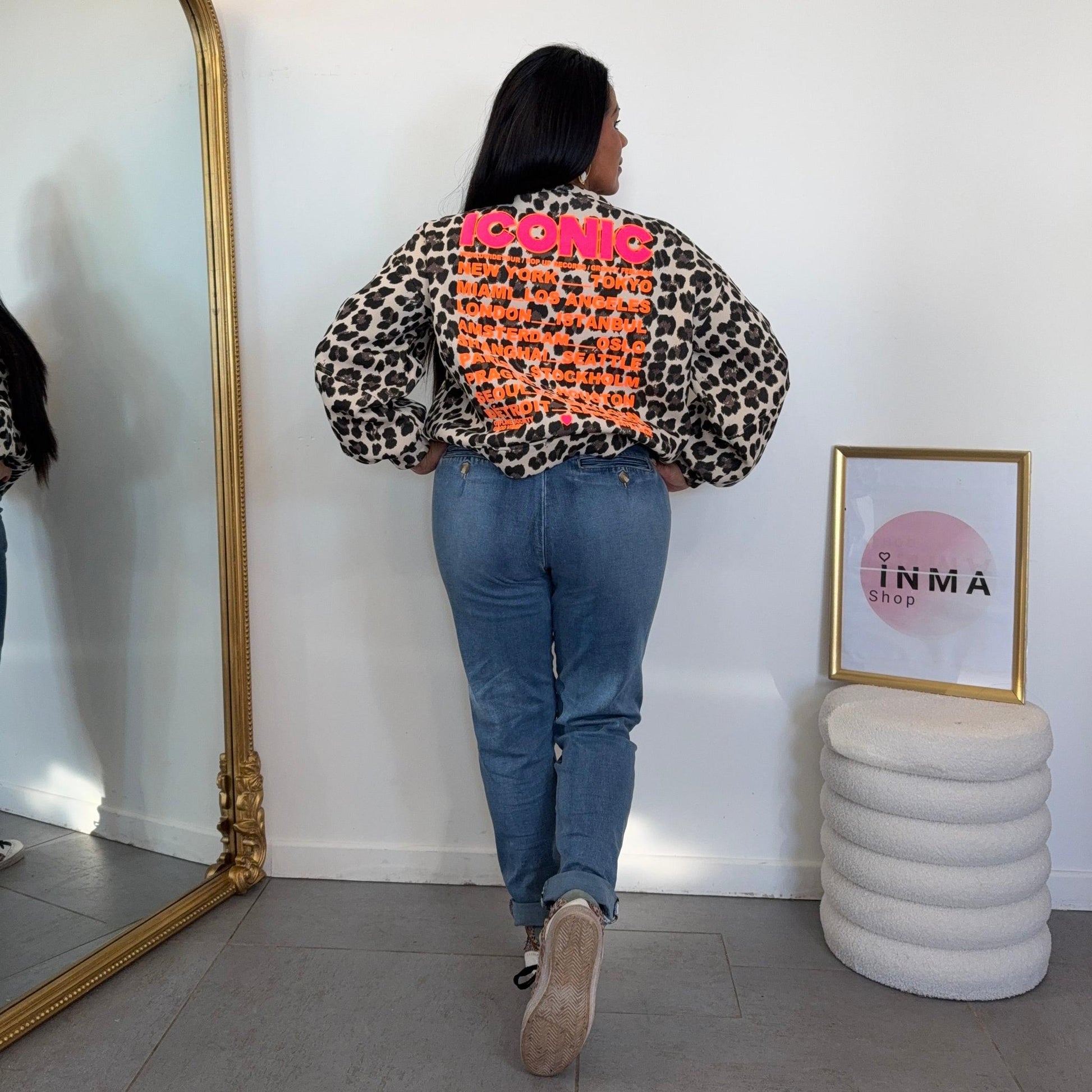 Son imprimé léopard intemporel est sublimé par un message graphique au dos, qui apporte une vraie touche mode et urbaine.