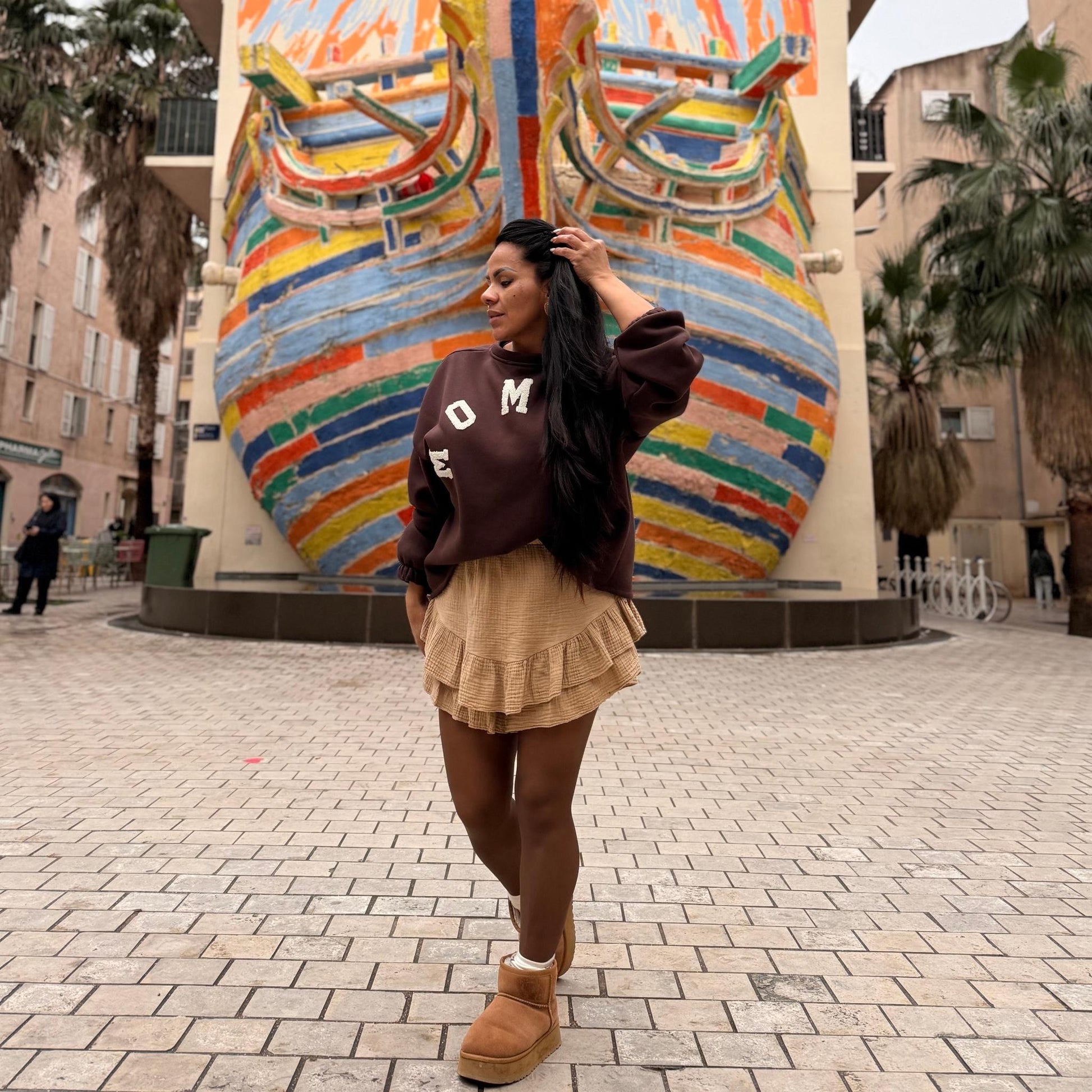Le sweat Mommy Coffee est une pièce cosy au style décontracté, pensée pour allier confort et caractère. Sa coupe ample offre une grande liberté de mouvement, idéale pour le quotidien, tandis que son inscription apporte une touche moderne et assumée.